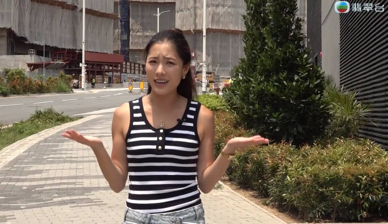 朱文慧在節目中穿著清涼小背心,報導今集個案。(圖片來源:TVB)