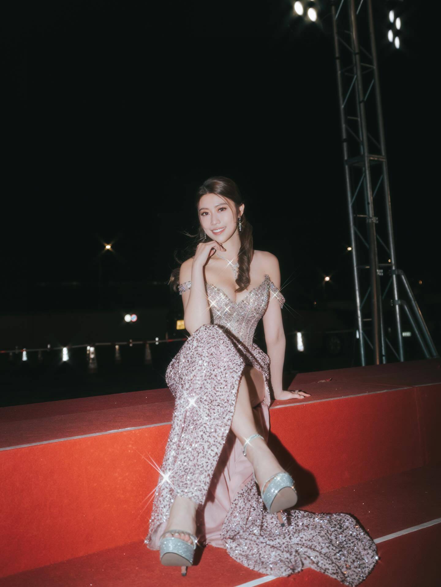 曾遭露宿者追打而成為話題的廖倬竩,今次以粉紅色蛋糕裙造型出席,吊帶設計配合高開衩,展現出甜美與性感並重的風格。她與鄧凱文一同站在6人團隊的C位,粉紅色造型在一眾深色晚裝中格外搶眼。蛋糕裙的設計增添了少女感,與她平日在節目中的形象形成有趣對比。