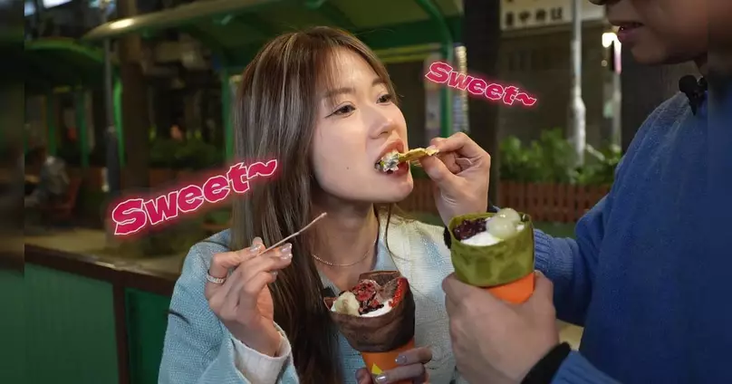 飽餐一頓後,甜蜜行程尚未結束!行仔鬼馬地送上一盆小盆栽代替傳統花束,預祝波波佳節快樂,心思滿滿。隨後,兩人轉場到區內人氣爆燈的可麗餅(Crêpe)店歎甜品,分別點了士多啤梨香蕉配朱古力雪糕及抹茶紅豆白玉口味。鏡頭前兩人更甜蜜地分食一塊菠蘿乾,情侶感十足,完美完成一日限定的約會任務,畫面充滿粉紅泡泡,令觀眾都感受到他們的甜蜜氣氛。