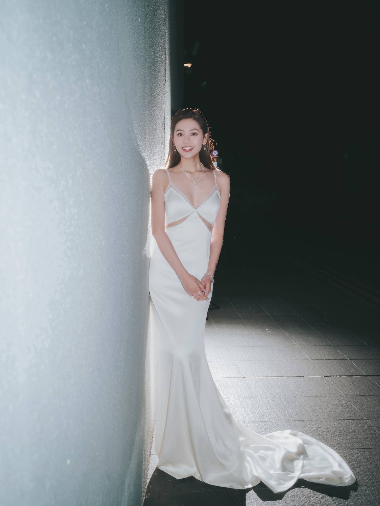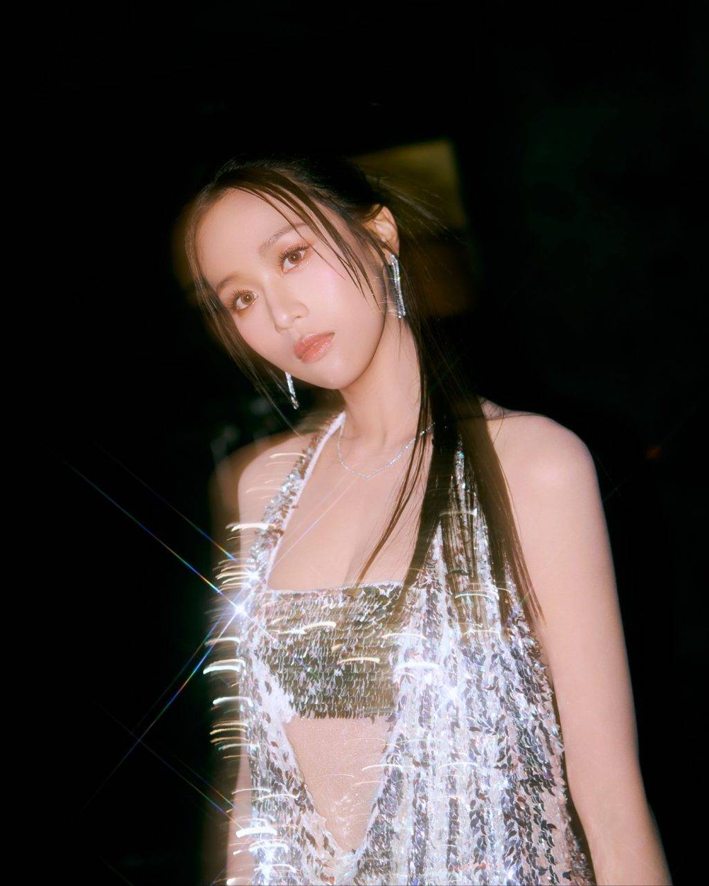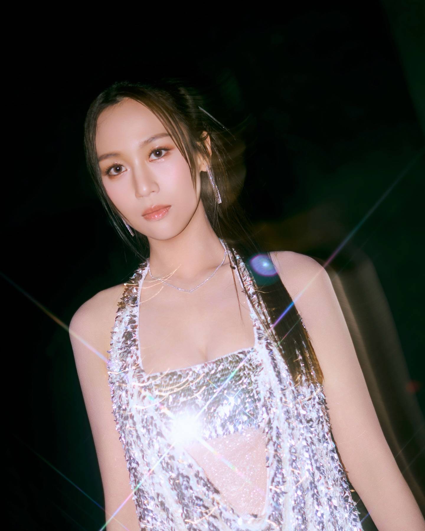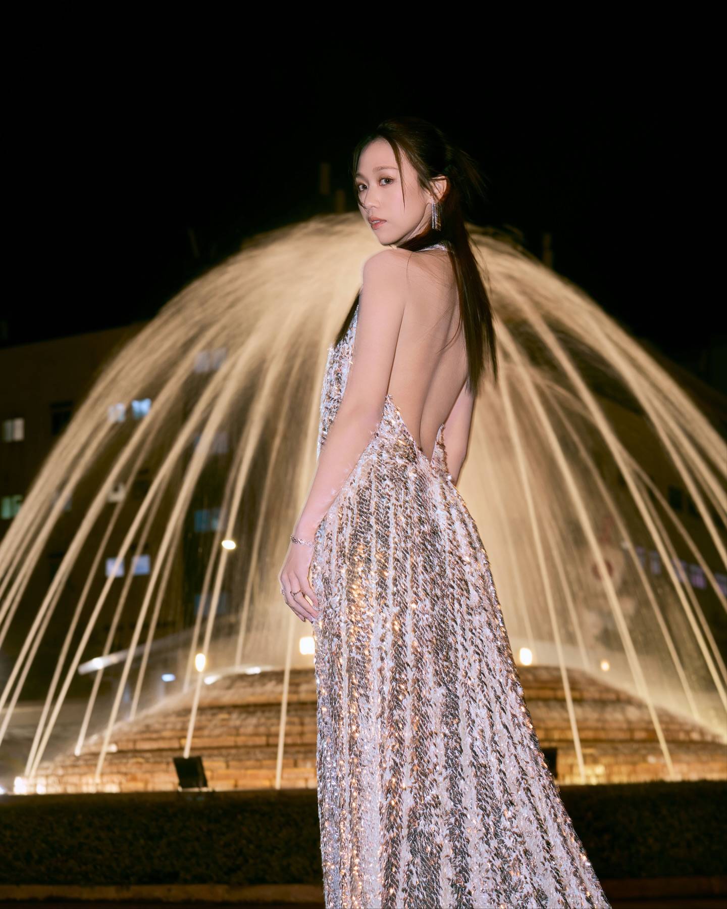 何沛珈選擇了全銀色造型上陣,金屬質感的設計在燈光下閃閃發亮,相當搶眼,顯得前衛時尚。