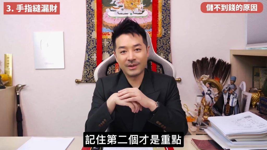 除了面相和父子關係,陳定幫也提到手相中的「漏財手」特徵。他指出「手指罅大」容易漏財。對於這種情況,他分享了一個實用的改善方法就是戴戒指,象徵性地「堵住」漏財的縫隙。另外,他也提到鼻孔,「如果你個鼻哥窿比較大,比較深,完全老遠都見到好大個鼻哥窿嘅,咁嗰啲又係漏財嘅」,建議他們留「二撇雞」補救。