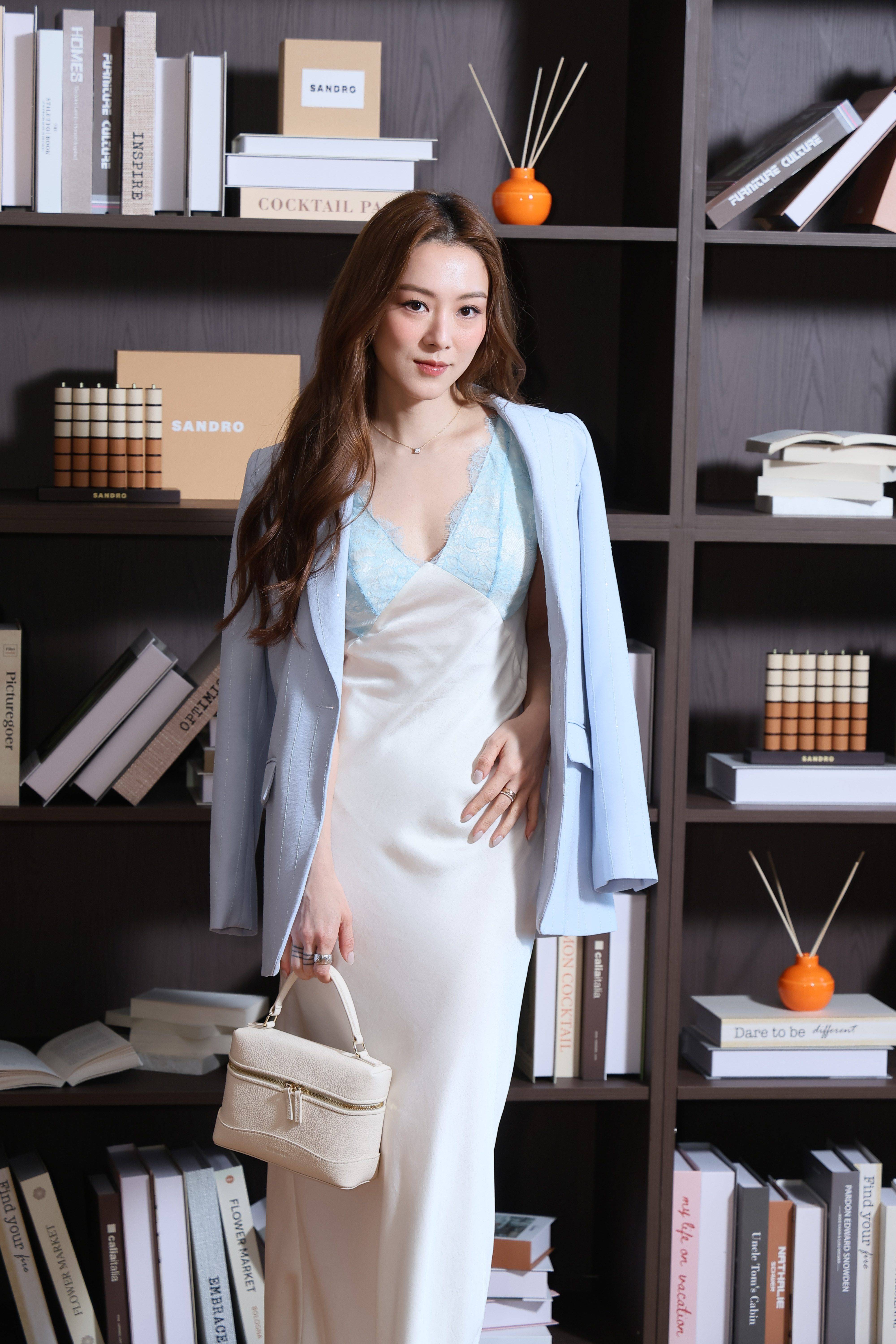 身穿一襲低胸搶眼裙裝的王敏奕,今日盛裝現身中環出席國際品牌SANDRO的最新時裝活動。她急不及待投入欣賞品牌的SS26最新系列,展現其獨到的時尚品味:「其實自己本身都好鍾意呢個品牌,我一做fitting我已經好鍾意!」她特別鍾情於簡約優雅吊帶裙風格,認為今季系列中的淺藍色配白色組合,完美符合自己個人喜好。