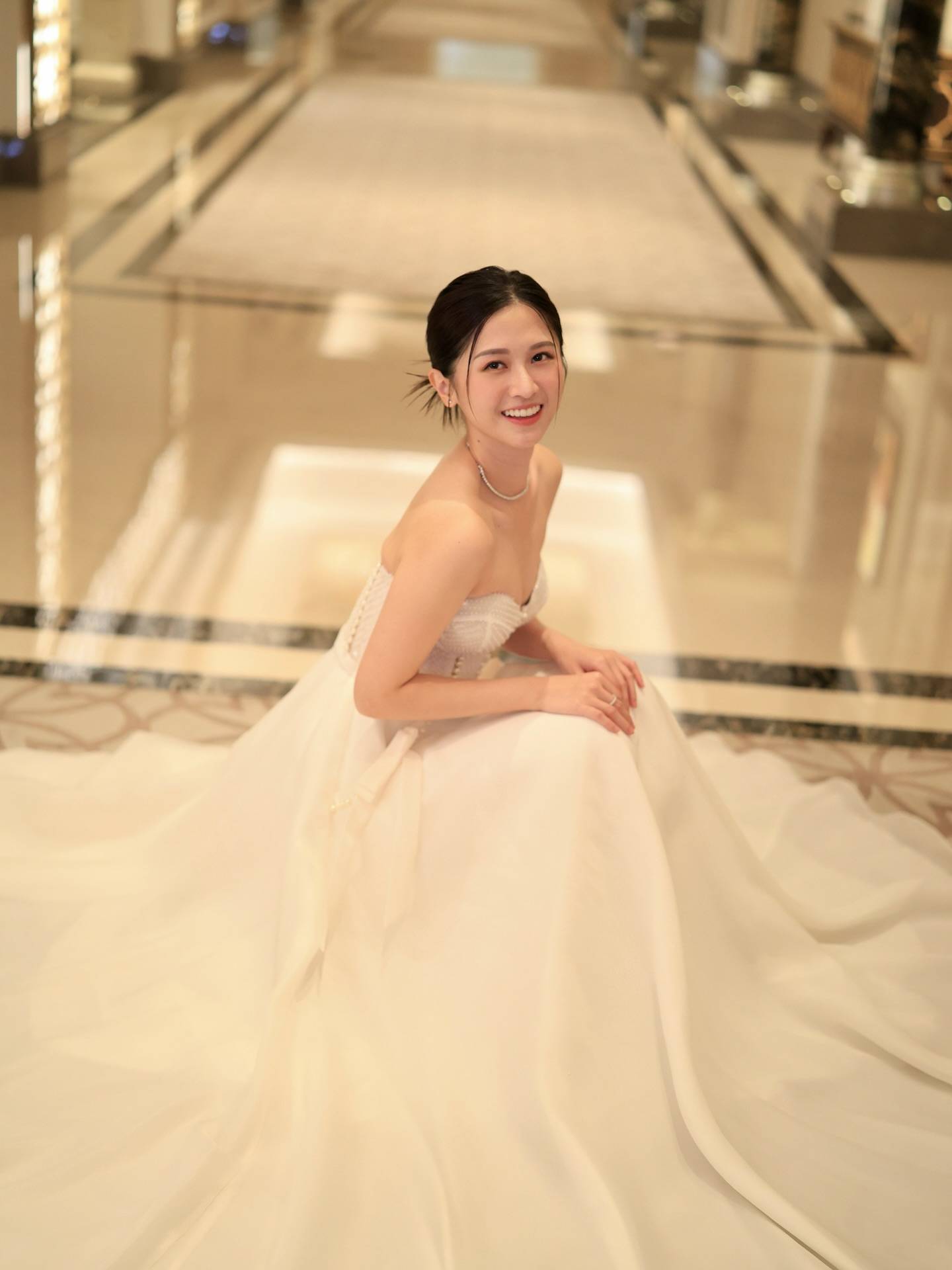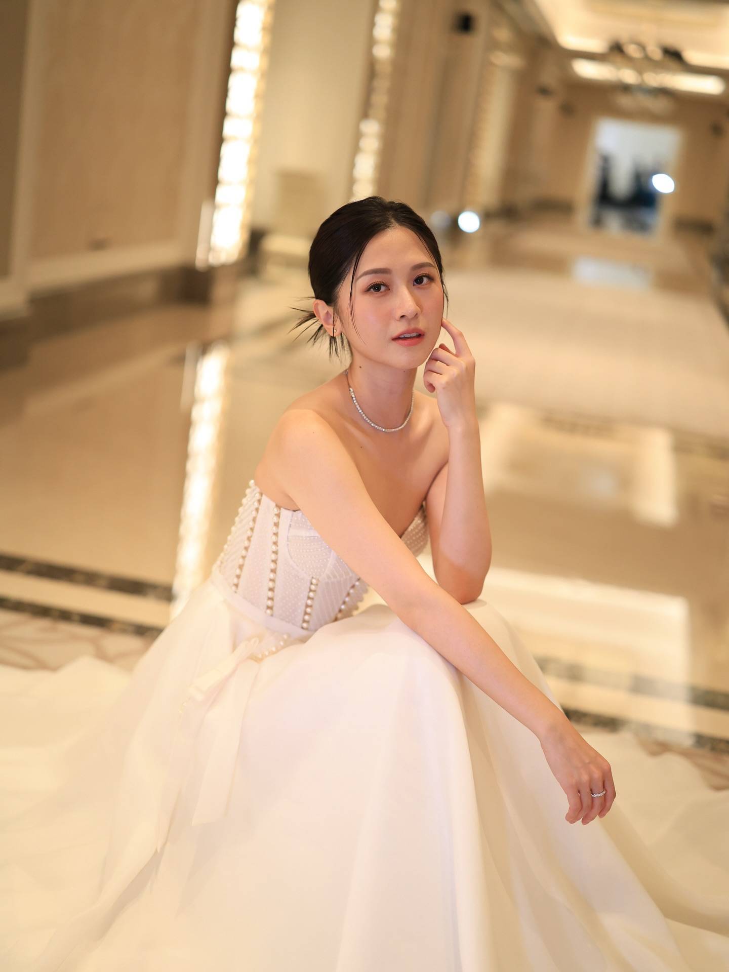 Carmen Ngai倪嘉雯抹胸白色晚裝優雅俏皮