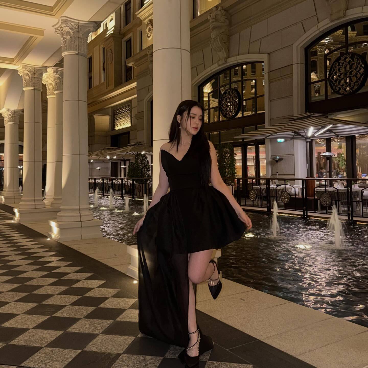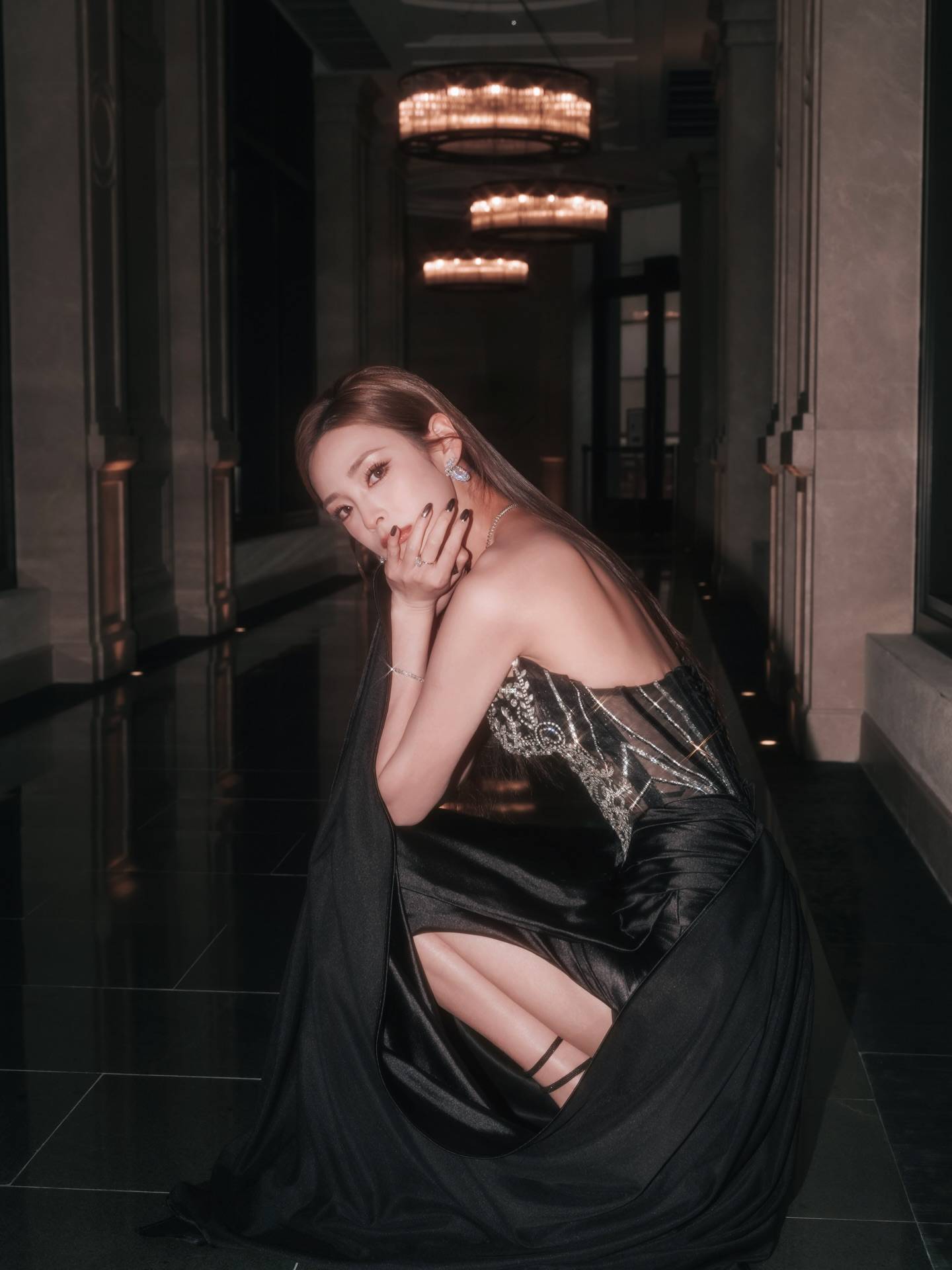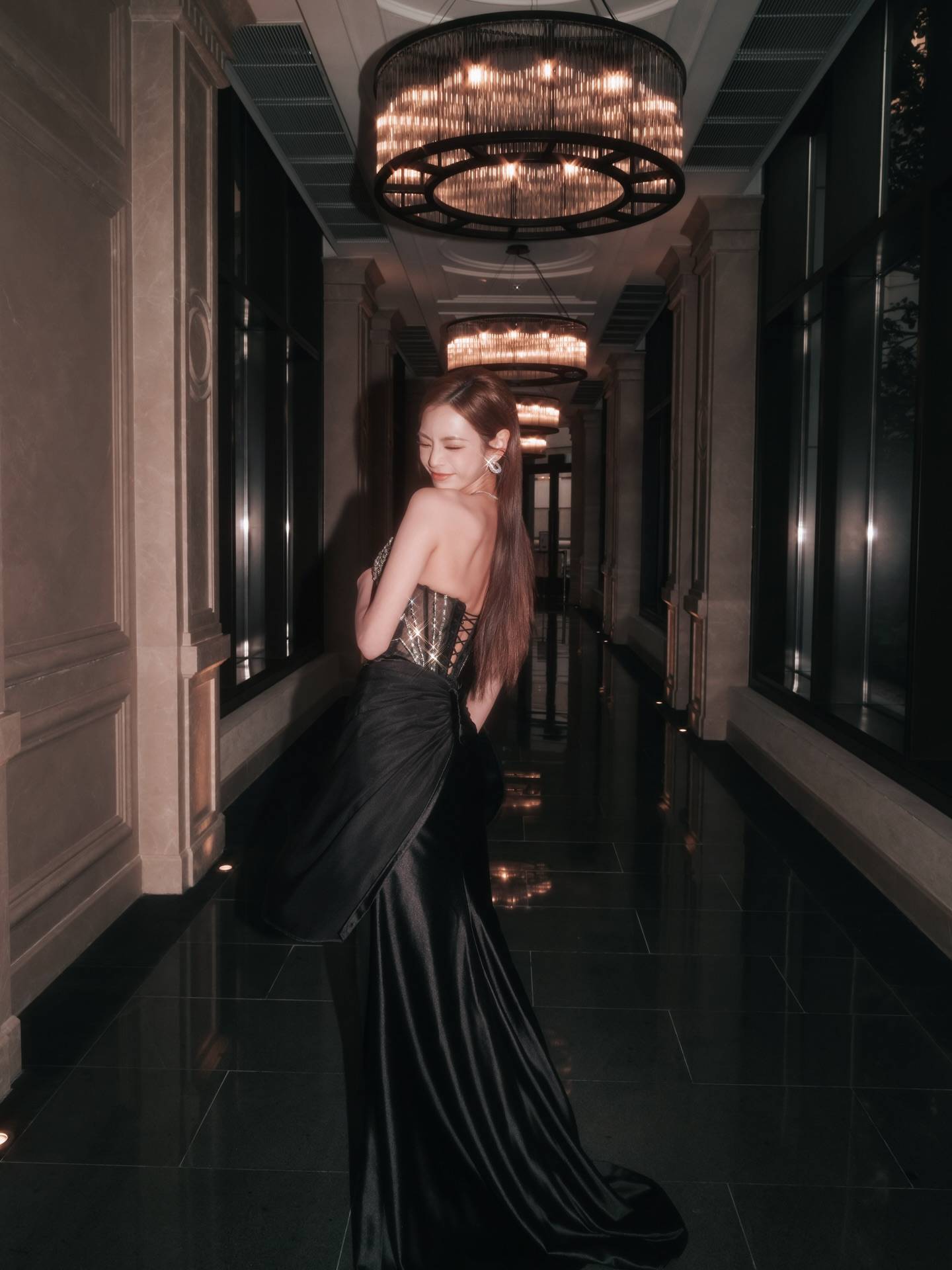 陳楨怡黑色抹胸長裙高開衩露美腿