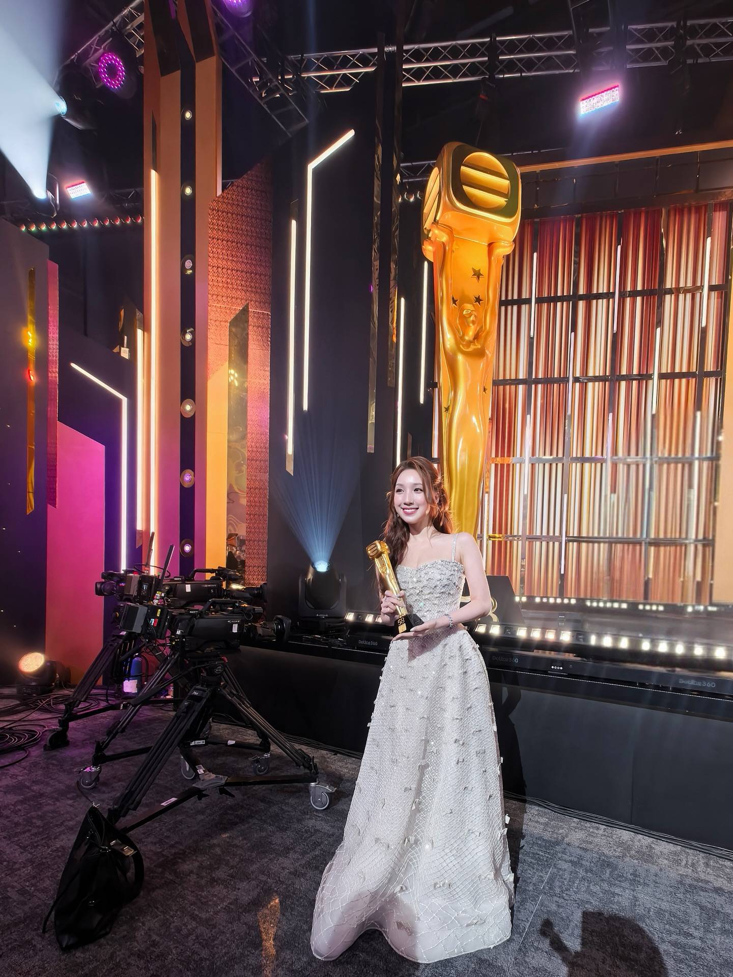 奪得「最佳女新人」獎的Carmen Ngai倪嘉雯,選擇了抹胸白色晚裝出席頒獎禮。這套造型既優雅又帶有俏皮感,白色更襯托出她的純真氣質,與她新人的身份非常配合,展現出新一代女藝人的魅力。