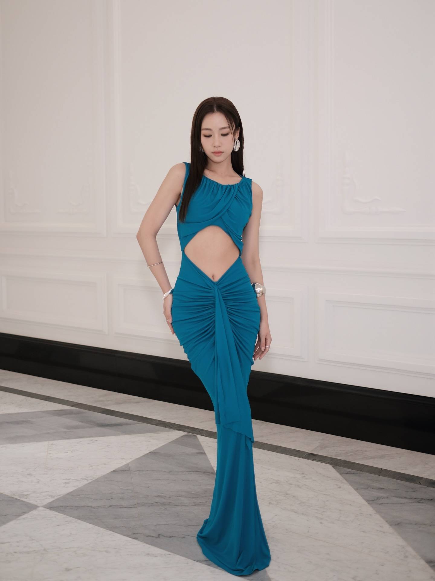 何沛珈選擇了藍色露臍裝踏上紅地毯,貼身設計完美勾勒出她的身材曲線。這套造型在性感與優雅之間取得完美平衡,既展現了她的好身材,又不會過於暴露,展現出成熟女性的魅力。藍色調更襯托出她的膚色,整體造型相當搶眼。
