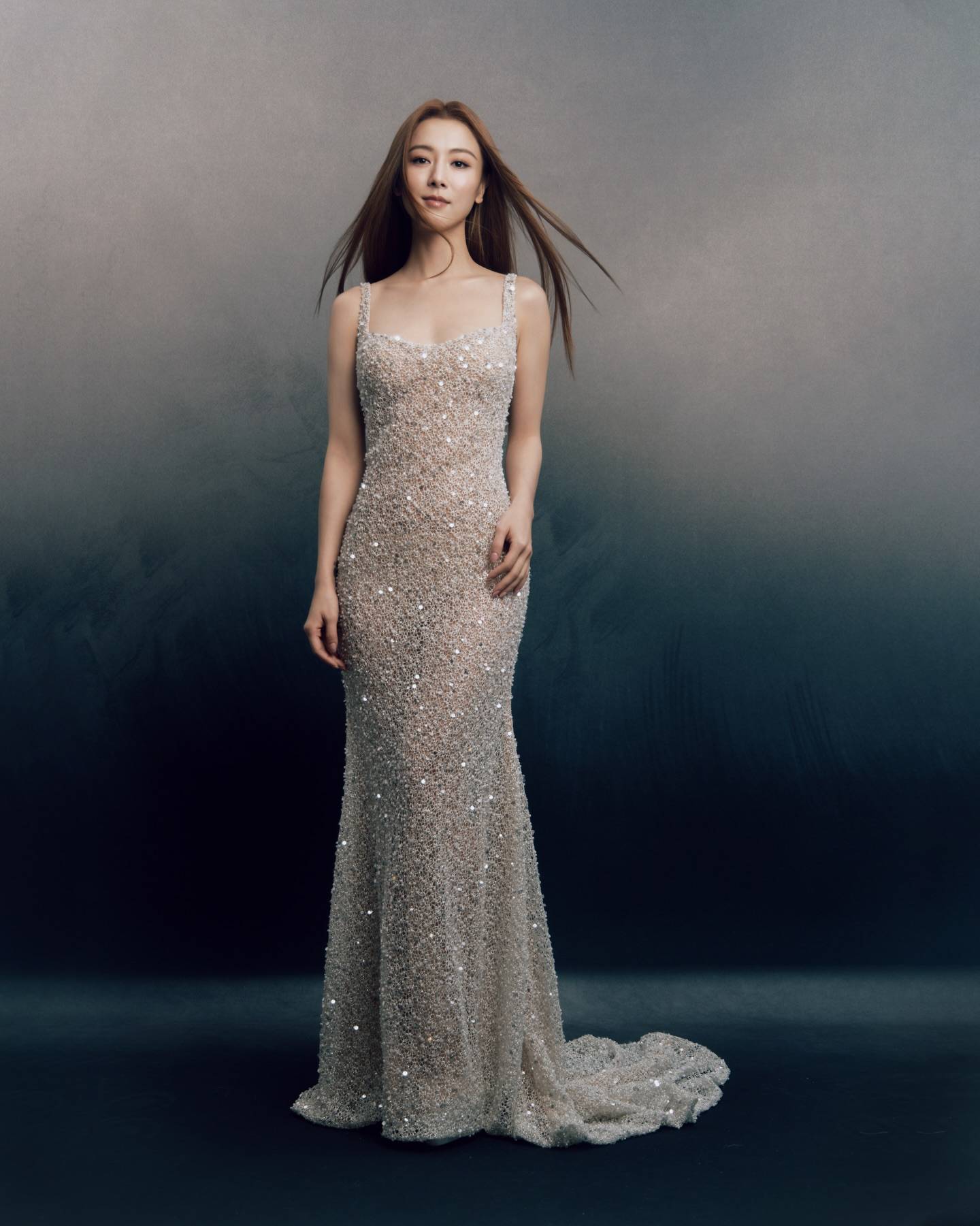 Hedy海兒吊帶閃亮長裙上圍吸睛