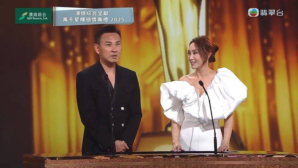 頒獎禮有歡笑亦有淚水。在「致敬2025年離世藝人」環節,氣氛莊重感人。當大銀幕播出去年離世的「Benz雄」許紹雄的片段時,全場更是瞬間淚崩。鏡頭捕捉到台下的佘詩曼、高海寧眼泛淚光、神情肅穆,場面傷感,令人懷念這位帶給我們無數歡樂的好戲之人。