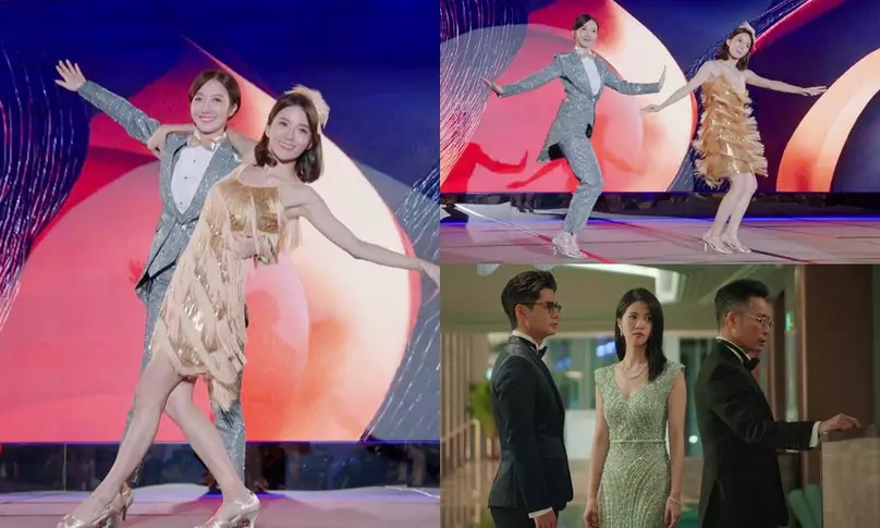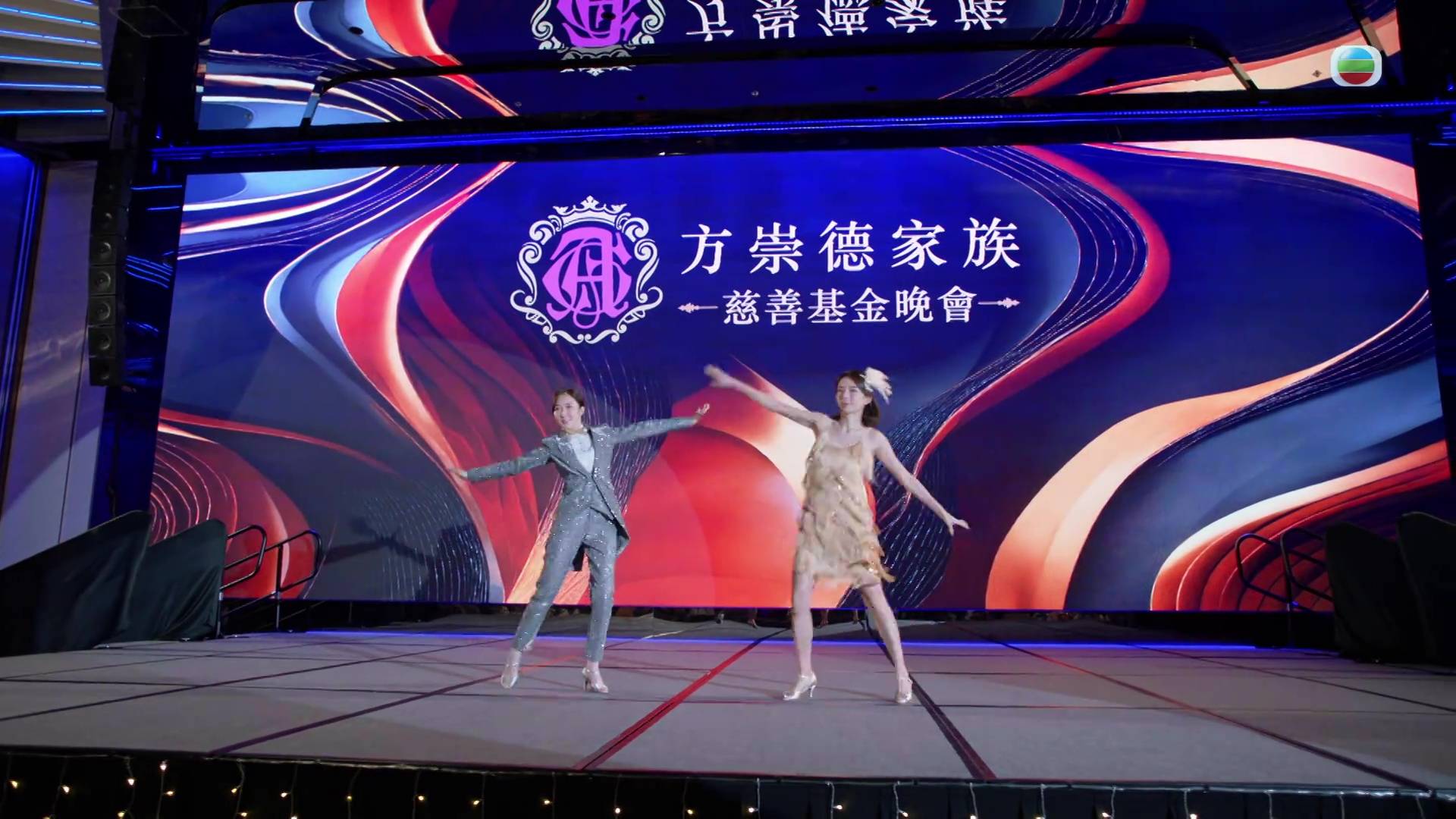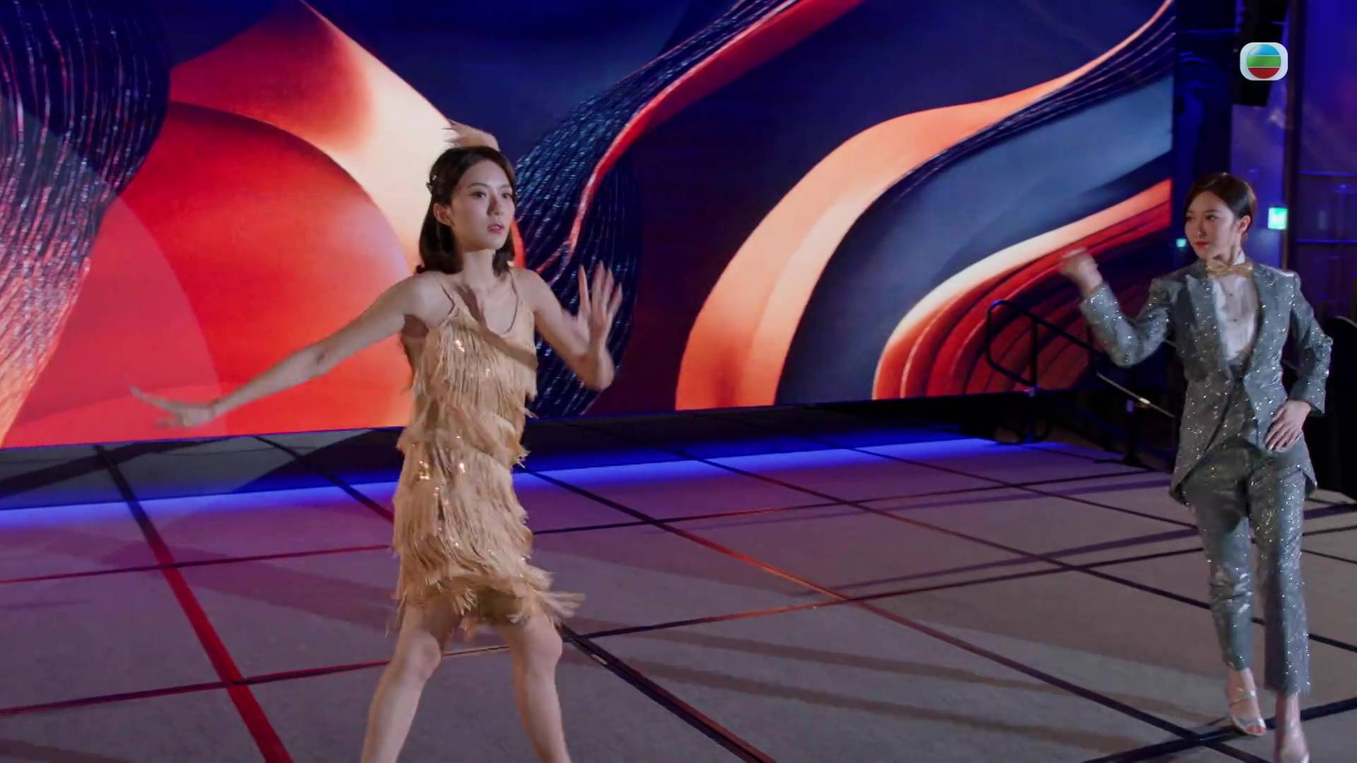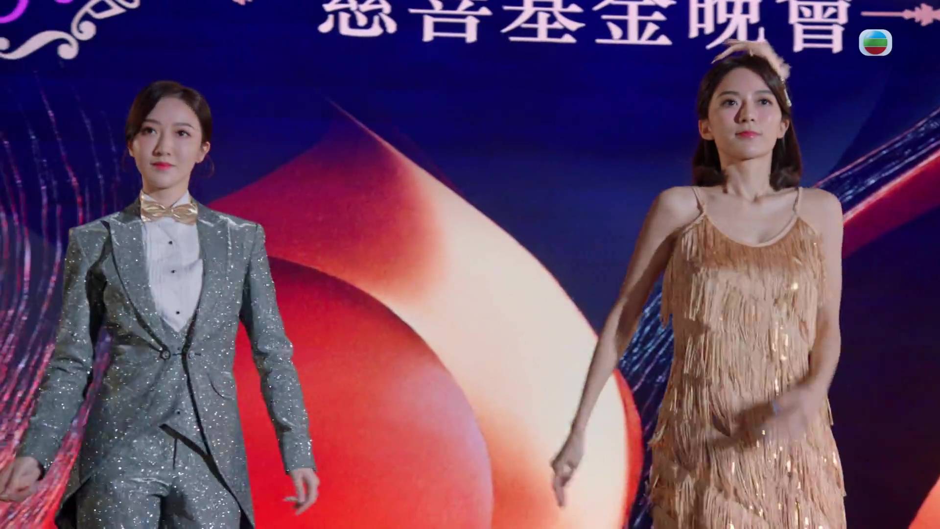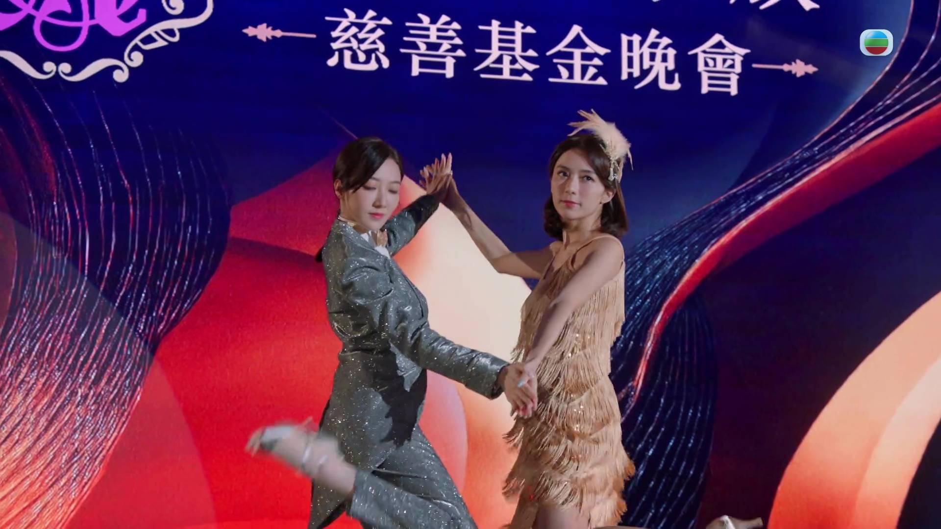 在昨晚播出的劇情中,何依婷(飾演善荃)與陳星妤(飾演嘉欣)為拯救失場的慈善晚宴,緊急上陣表演跳舞。何依婷一改戲路,穿上銀色閃亮中性西裝反串演出,而陳星妤則以一身金色流蘇貼身裙上陣,大騷美好身段。二人在長達3分鐘的表演中不斷扭動腰肢,大晒纖長手腳,當中陳星妤一招「180度天外飛腳」及結尾的「風月俏佳人」甫士,更是盡顯功架與女人味。值得留意的是,在擺出高難度甫士時,何依婷全程以手緊扶陳星妤腰肢,盡顯戲內戲外的好感情,場面溫馨。