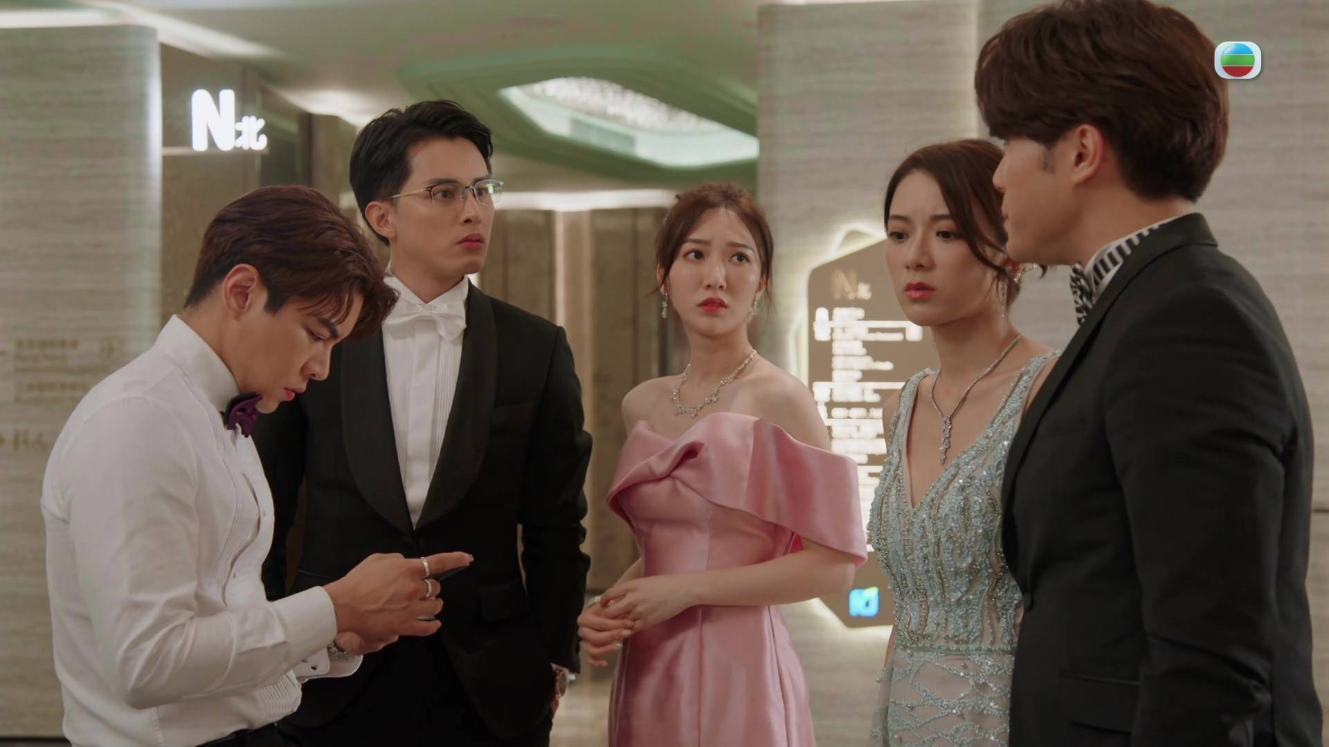 台慶劇《金式森林》昨晚(4日)劇情再掀高潮,何依婷與陳星妤臨危受命,在慈善晚宴上大跳辣舞,場面極度火辣!正當二人以一連串高難度動作炒熱全場氣氛之際,會場大銀幕竟突然播出陳星妤的整容黑材料影片,令她當場嚇窒,陷入聲譽及婚姻危機,究竟誰是幕後黑手?