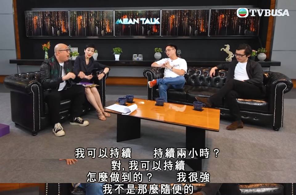 節目中鍾培生毫不避諱地分享性愛心得,表示可以控制自己的高潮,兼且能夠滿足性伴侶,甚至有很多男性朋友都會向他請教相關技巧。他建議可以從控制呼吸和鍛練下盤肌肉方面入手來提升性能力,自言自己由細練到大。更令人咋舌的是,他分享了大學放長假期間的性愛經歷,聲稱在17、18日的假期中一共做了52次,用了四盒12個裝以及一小盒3個裝的避孕套。
