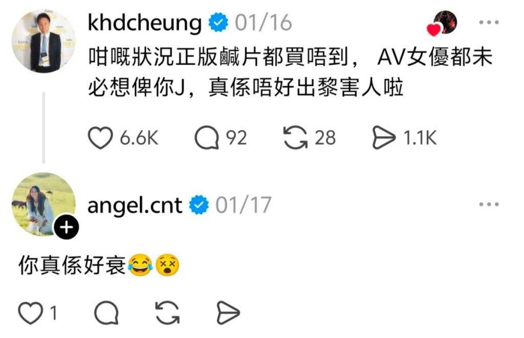 網民化身偵探,成功Cap圖提供證據指今年初兩人已在Threads公開打情罵俏。鍾培生自稱乖仔時,莊雅婷表示認同;當鍾培生自嘲「咁嘅狀況正版鹹片都買唔到,AV女優都未必想俾你J,真係唔好出黎害人啦」時,莊雅婷回應「你真係好衰」,兩人的互動充滿情侶間的甜蜜調侃。網友根據這些蛛絲馬跡猜測:「明顯係女追男」,認為莊雅婷可能是主動追求的一方,這個發現讓整段戀情更添趣味性。