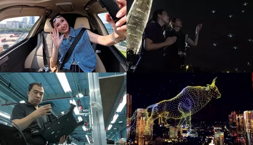 在昨晚播出的節目中,陳貝兒率先走入內地無人機表演的領跑者「大漠大智控」。團隊成立未滿十年,已憑自研機型累計奪得6項健力士世界紀錄,佔據全國文旅無人機表演市場超過六成。Janis親身參與一場大型匯演,現場直擊12,000架無人機同時升空的壯觀場面,畫面令人嘆為觀止。最令人意外的是,如此龐大的機群表演,背後竟然只需一位同事、一部電腦按程序控制。該公司於2020年已憑3,000多架無人機刷新世界紀錄,到2024年更以逾萬架規模再次改寫健力士,並同時打破「單台電腦控制最多無人機升空」的紀錄,技術實力驚人。