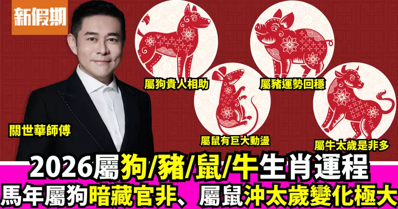 2026馬年即將來臨,想知道來年運勢如何趨吉避凶?著名風水命理顧問、關之琳胞弟關世華師傅率先披露屬狗、豬、鼠、牛的最新運程!有生肖沖太歲變化極大,甚至面臨失業危機,亦有生肖是非纏身恐惹官非。究竟邊個生肖財運亨通,邊個又要特別提防?即刻為你詳細拆解!