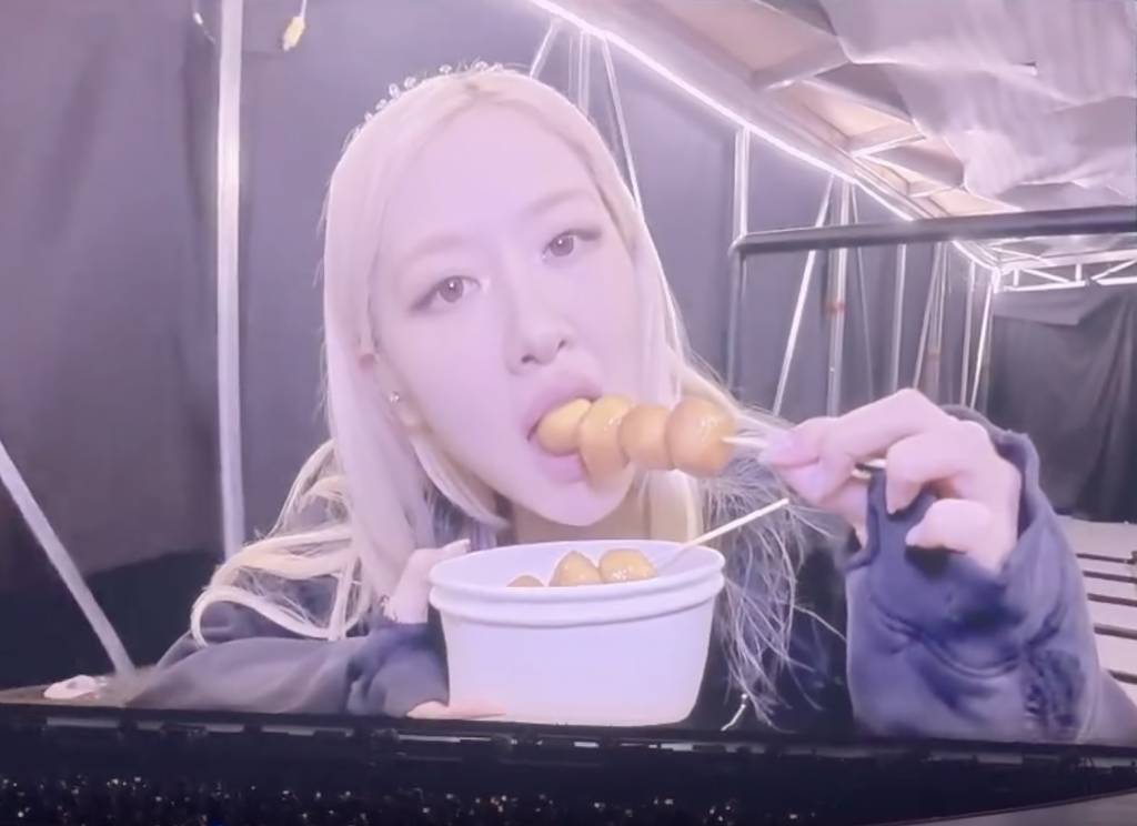 blackpink 演唱會 Rosé後台品嚐香港雞蛋仔表情滿足可愛(圖片來源:Threads圖片)