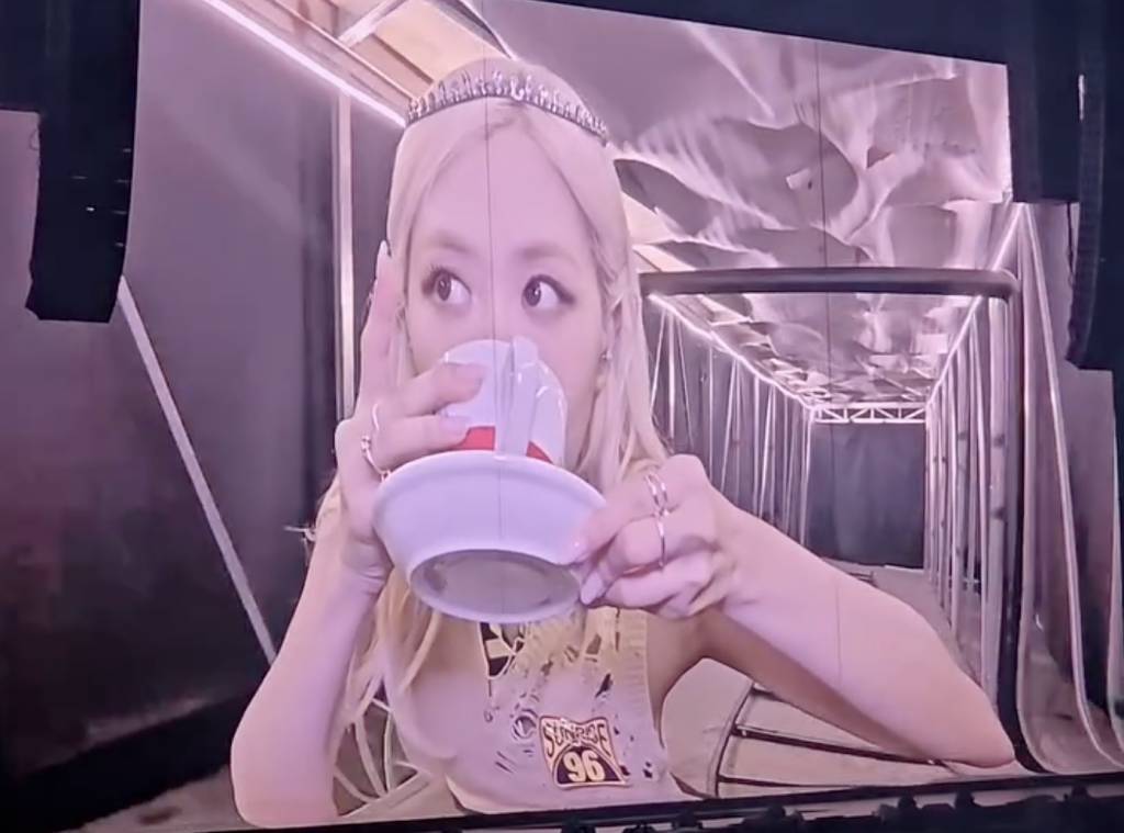 來到第二場演出,Rosé則手持經典的黑白奶茶杯,在台上豪邁大嘆濃郁的港式奶茶。她一邊品嚐一邊露出「超好味」的滿足表情,甚至還做出誇張的讚賞手勢,令台下觀眾笑聲不斷。Rosé喝完奶茶後還特意舉起杯子向觀眾展示,彷彿在為港式奶茶做宣傳,現場再次爆發熱烈掌聲。