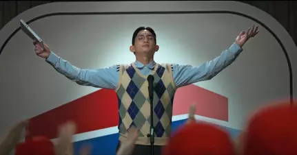 面對一眾信徒的熱烈支持,Tony深受感動,最終決定在眾人面前公開自己的真實身份。他激動地發表官方宣言:「我諗你哋未必認得我,但係我唔再隱瞞啦」,當信眾得知他就是「大台理論」的創始作者時,全場陷入超級興奮的狀態。Tony隨後霸氣高呼:「我哋忍夠啦,唔再收收埋埋,我哋要揸屋企嘅遙控!」。最爆笑的一幕發生在信眾準備膜拜時,Tony急忙澄清:「唔好叫我教主,我驚俾人誤會係嗰個台嘅人,叫我掌門!」,這句抵死對白明顯是向被稱為「教主」的Anson Lo瘋狂抽水。隨後信眾排隊親吻掌門,畫面更刻意配上大台式字幕及片尾曲,整個官方惡搞操作堪稱完美。