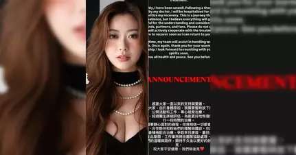Kylie C.今日在Instagram限時動態發出震撼聲明,表示「感謝大家一直以來的支持與愛護。很抱歉地通知大家,由於身體原因,我需要暫時放下接下來的所有公開活動和工作,專心接受治療。」她透露近期身體抱恙,經醫生詳細評估後,為了更好地恢復健康,將進行一段時間的治療。這個突如其來的消息令不少關心她的粉絲感到震驚,紛紛在社交平台留言關心她的身體狀況。