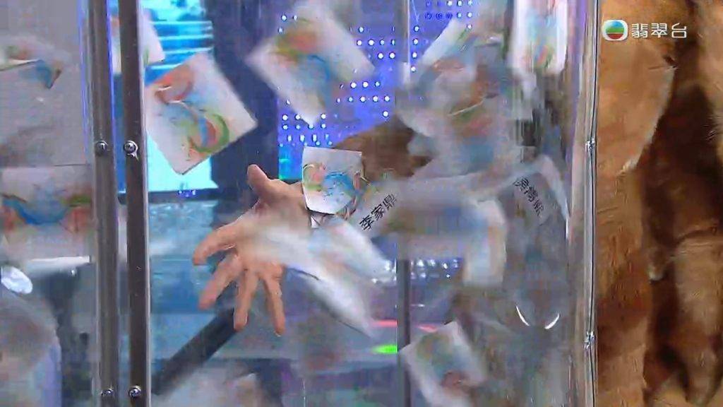 今晚直播有多個抽獎環節,不少獎項都由藝人在一座幸運吹風機中抽取得獎者,其中在時裝Catwalk表演環節過後,胡楓負責抽取20萬美容禮品的得獎者,本來伸入吹風機的手臂上已有「李家鼎」的名牌,但旋即被吹走,想不到最後胡楓右手一翻,再度抽中李家鼎,令到不少觀眾都覺得非常神奇!