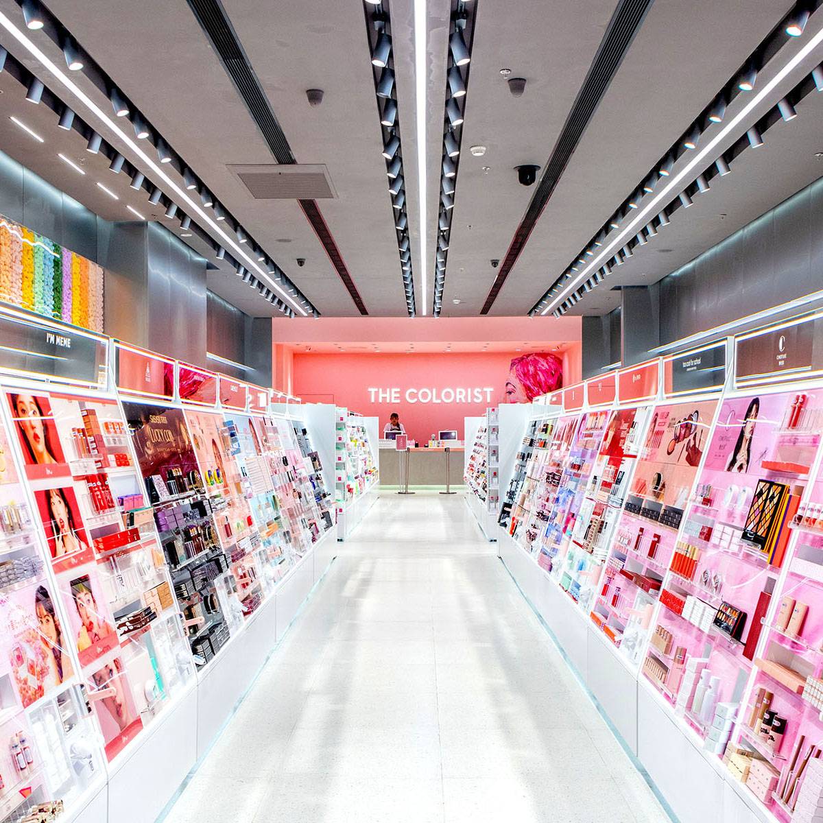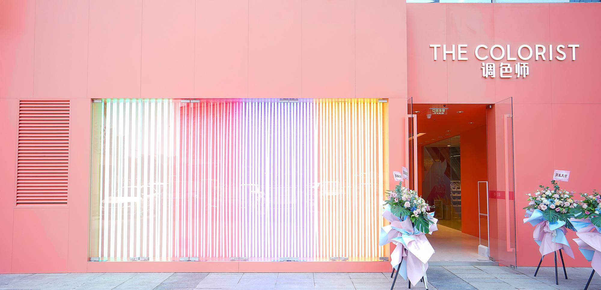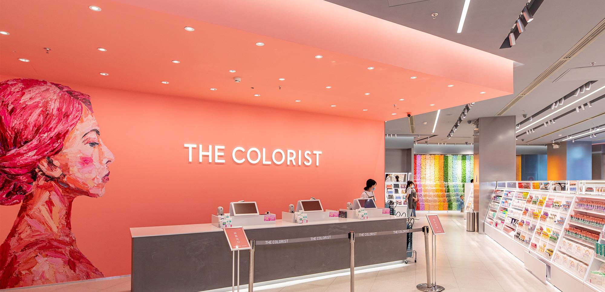 「THE COLORIST調色師」以Gen-Z消費者作為主客群,被譽為中國「Oliveyoung」,於2019年起在深圳及廣州開設分店,目前在中國已有達243間門市。店內以品牌的標誌性粉紅色系視覺陳列,深圳門市亦加入「水晶」質感設計,配合妝容獨有的「呼吸感」及「透氣感」,從店面營造彩妝特色。