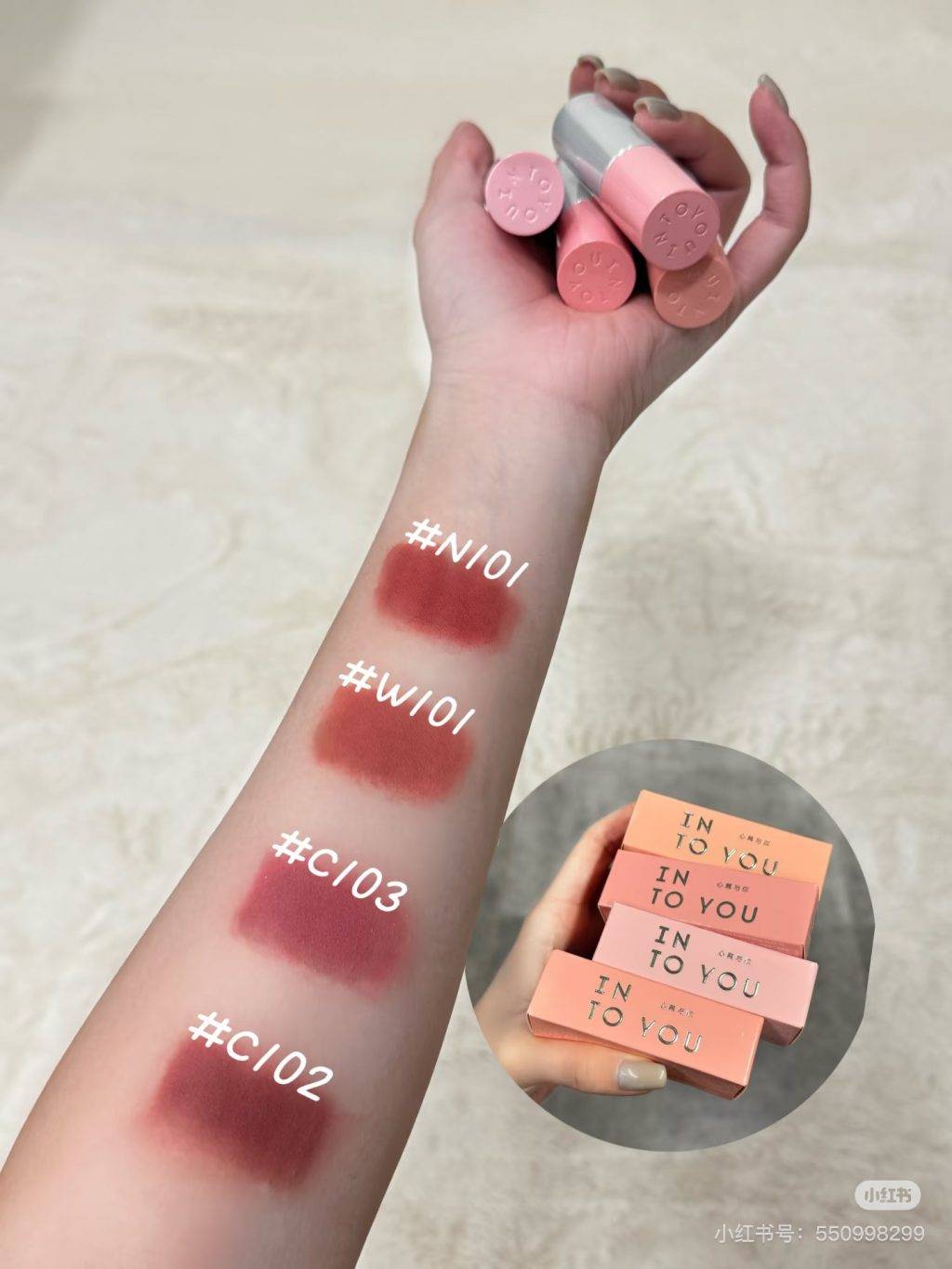品牌「INTO YOU心慕與你」推出的保濕空氣感唇泥2.0推出的秋冬色系唇泥顯色度高,且保濕成分適合秋冬乾燥天氣。秋冬大推「C102 霜降木」色號適合偏黃皮膚,帶出高雅木質色調;「N101空心楂」色號顯白並帶出明媚血色感,對中性黃皮膚非常友好!
