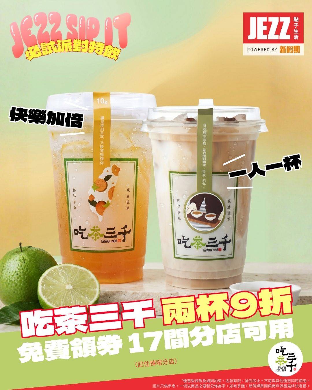 手搖控一定識台灣過江龍名店「#吃茶三千」!依家 #JEZZ點子生活 爭取到專屬福利,等你可以同 Friend 零負擔歎靚茶🤤!