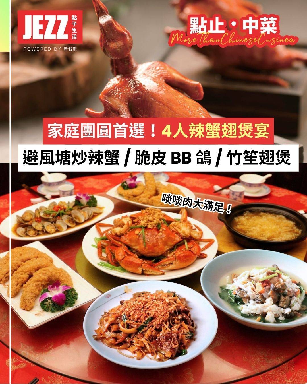 家庭聚餐首選!4人辣蟹翅煲宴!避風塘炒辣蟹/脆皮BB鴿/竹笙翅煲