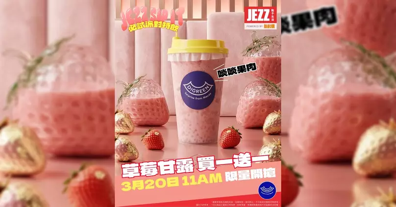 DIGREEN 📣草莓控注意🍓有啖啖士多啤梨果肉嘅手搖😍