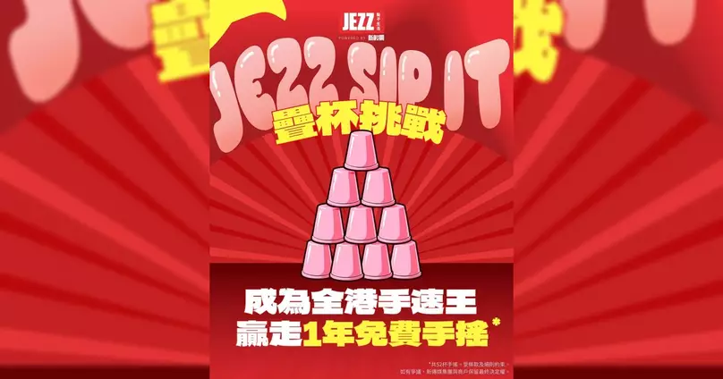 唔止要飲得有品味,仲要挑戰你嘅強大心臟!JEZZ Sip It 疊杯挑戰 連續四個週末登場,我哋要搵嘅就係你——全港最快嘅「手速王👑」!