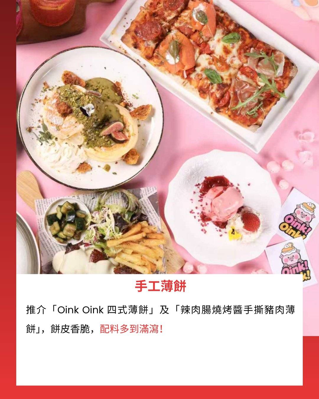 【 🍕 手工薄餅與創意驚喜 】 除咗豬肉,佢哋嘅 Pizza Set ($398) 都係誠意之作。推介「Oink Oink 四式薄餅」,餅皮香脆,配料多到滿瀉!仲有「黑松露意大利飯配芝士焗大啡菇」,黑松露香氣撲鼻,口感層次超豐富。