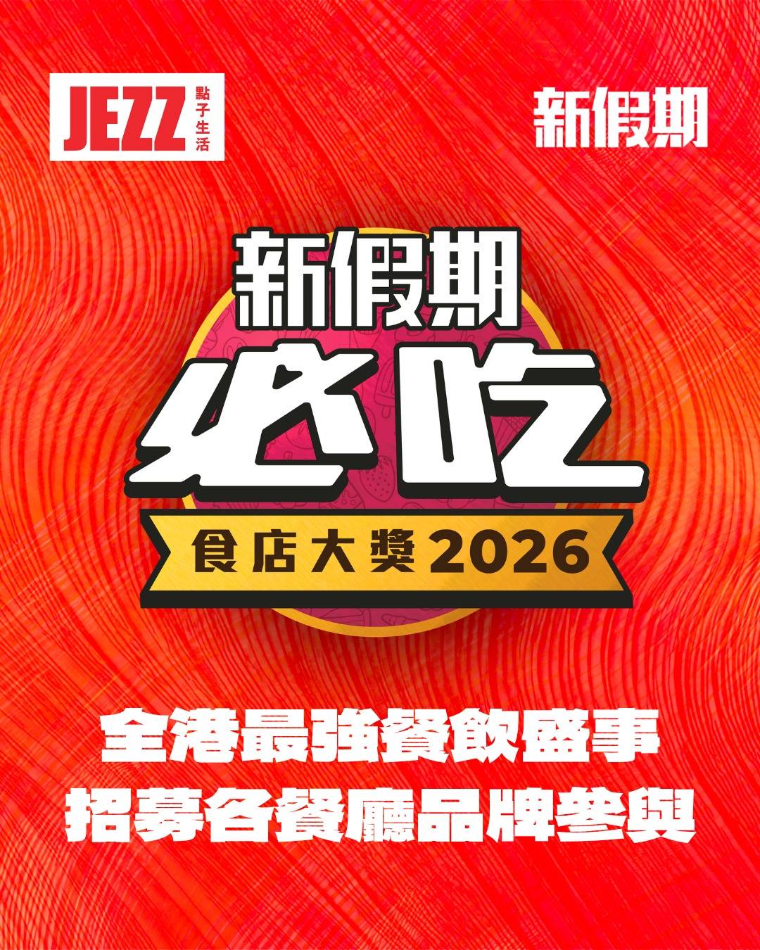 全港最強餐飲 IP —— 《新假期必吃食店大獎 2026》 正式啟動全港餐廳招募!我哋唔止係頒個獎咁簡單,更要透過一系列活動,將「支持本地消費」變成一場全民參與嘅狂歡,幫各品牌帶動人流同生意!