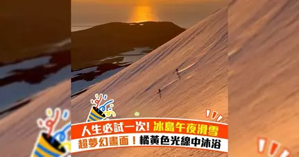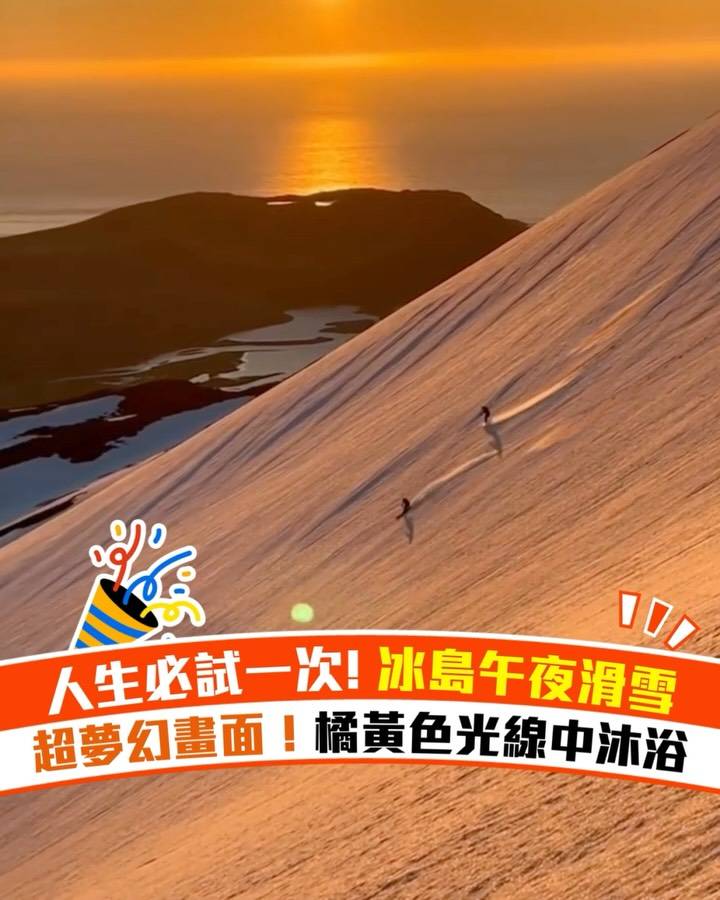 人生必試一次! 冰島午夜滑雪!超夢幻畫面!橘黃色光線中沐浴