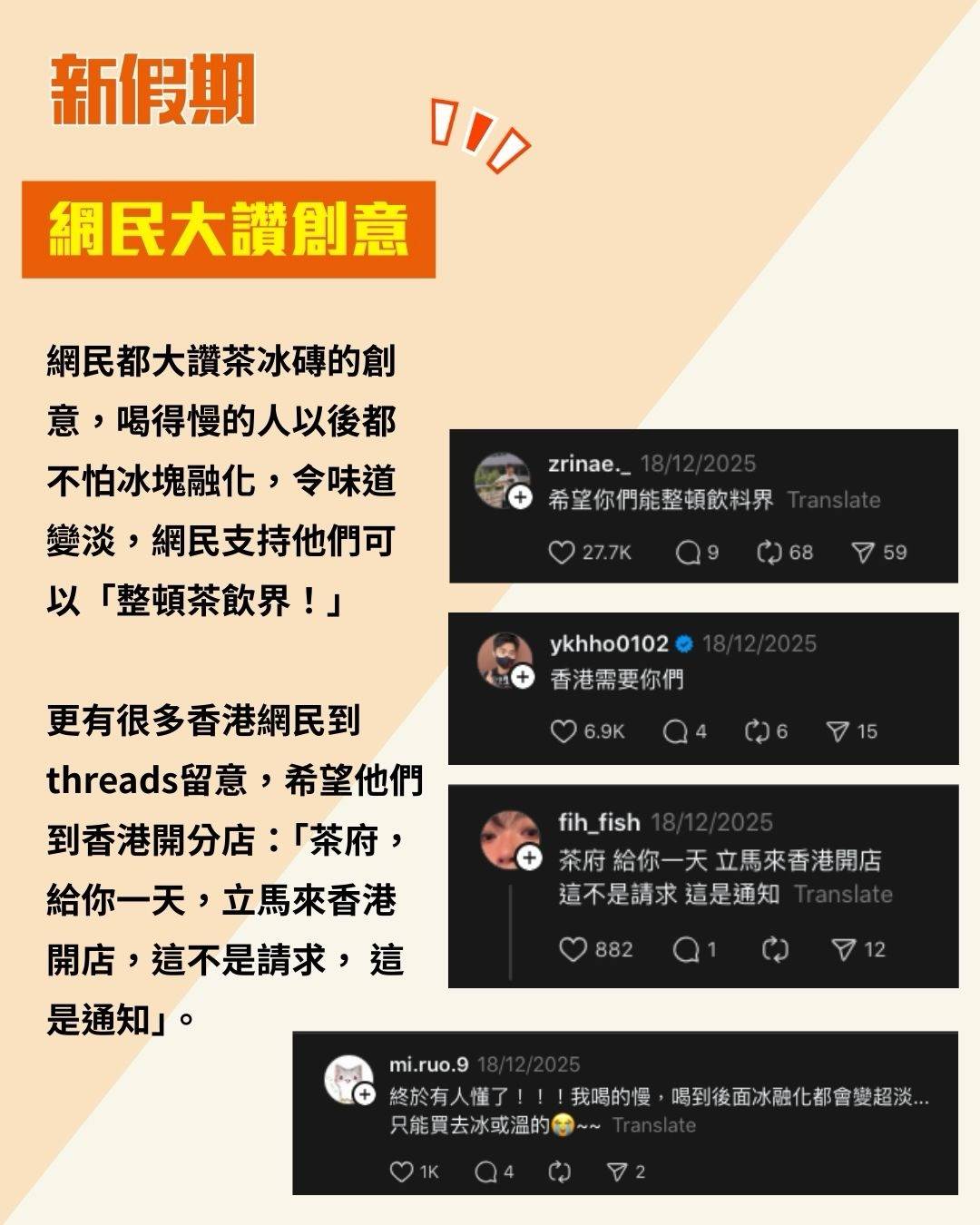 更有很多香港網民到threads留意,希望他們到香港開分店:「茶府,給你一天,立馬來香港開店,這不是請求, 這是通知」。