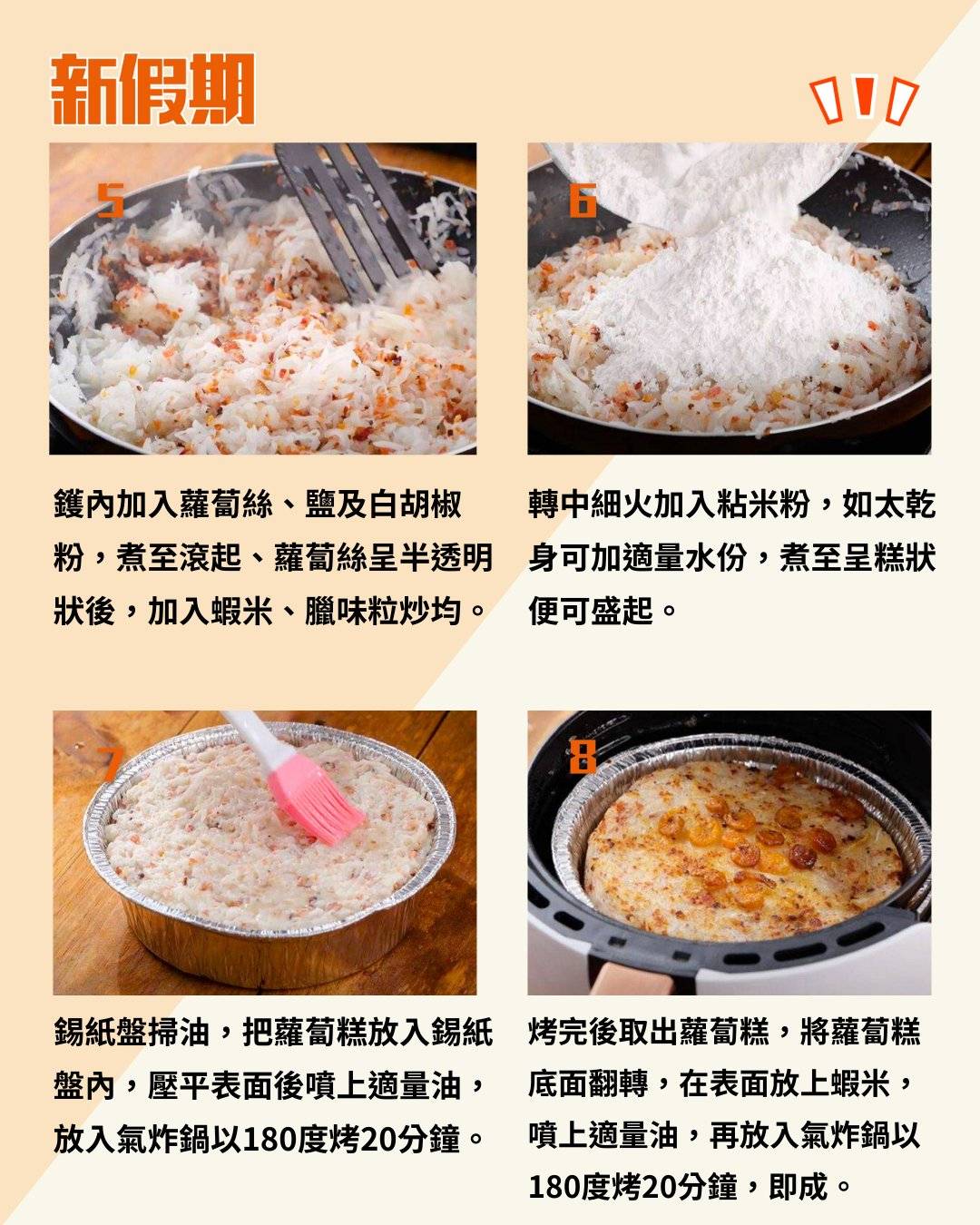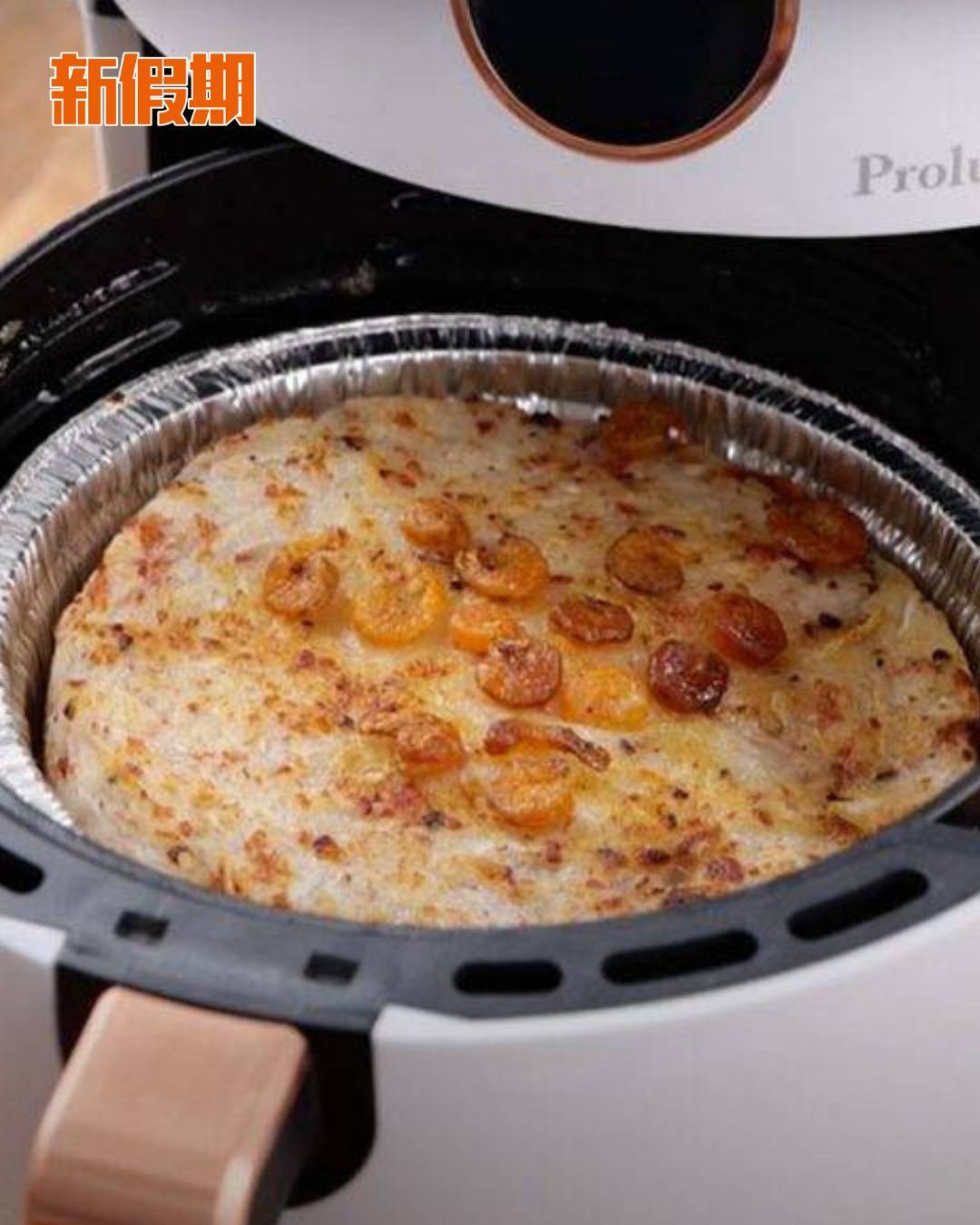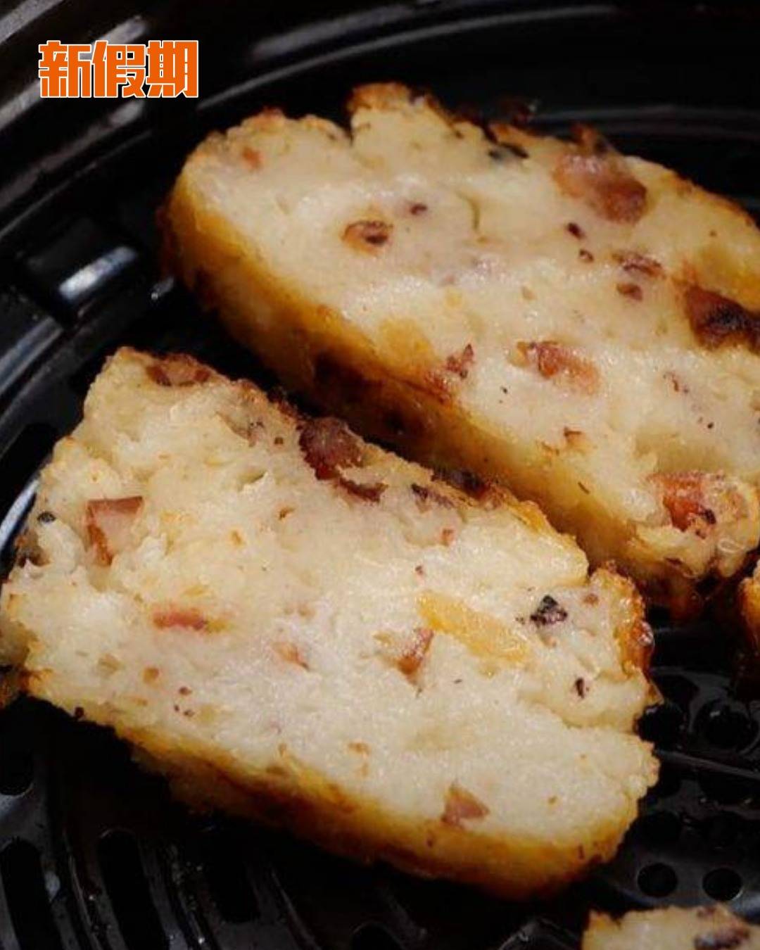 蘿蔔糕絕對是不可或缺的賀年美食,想不到除了蒸之外,還可以氣炸鍋來炮製。最重要是步驟非常簡單,只需把蘿蔔糕磨成絲,將所材料加入平底鑊,直接加粘米粉炒成糕狀,便可放入氣炸鍋內烤焗。兩面烤足20分鐘即成,外皮比一般的更加金黃、脆卜卜,即食都無問題!