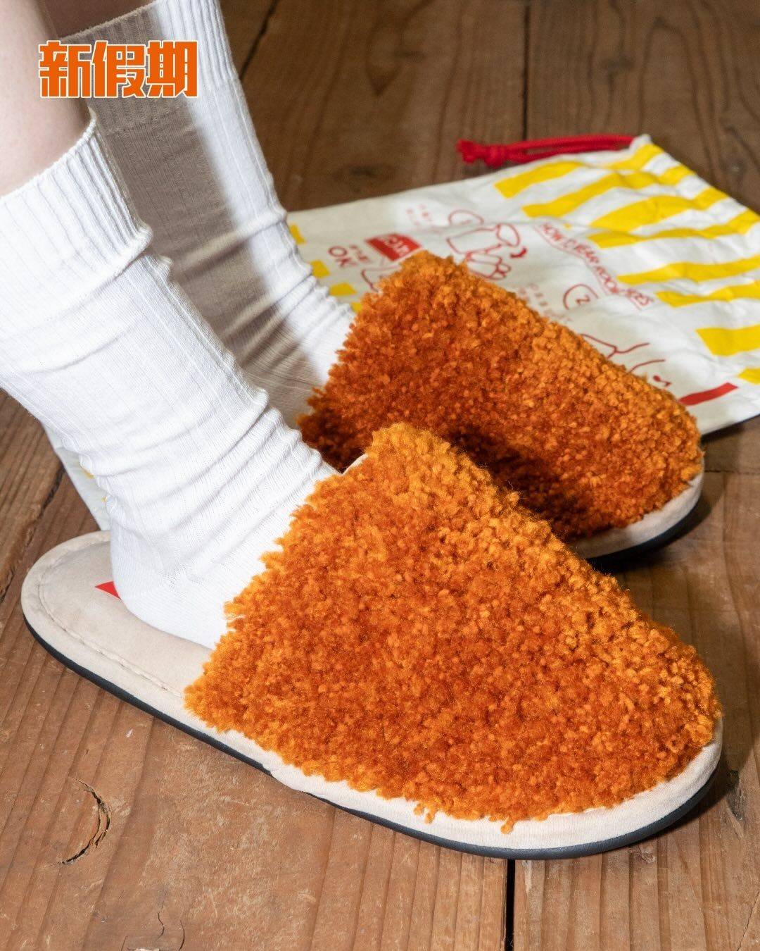 當中最搶眼的就是和MIYOSHI RUG合作的炸雞拖鞋!融合炸雞標誌,拖鞋表面以不規則圖案編織而成,造成炸雞的樣子,鞋墊採用類似雞肉的麂皮所製,連鞋袋神還原炸雞包裝,好得意呀!