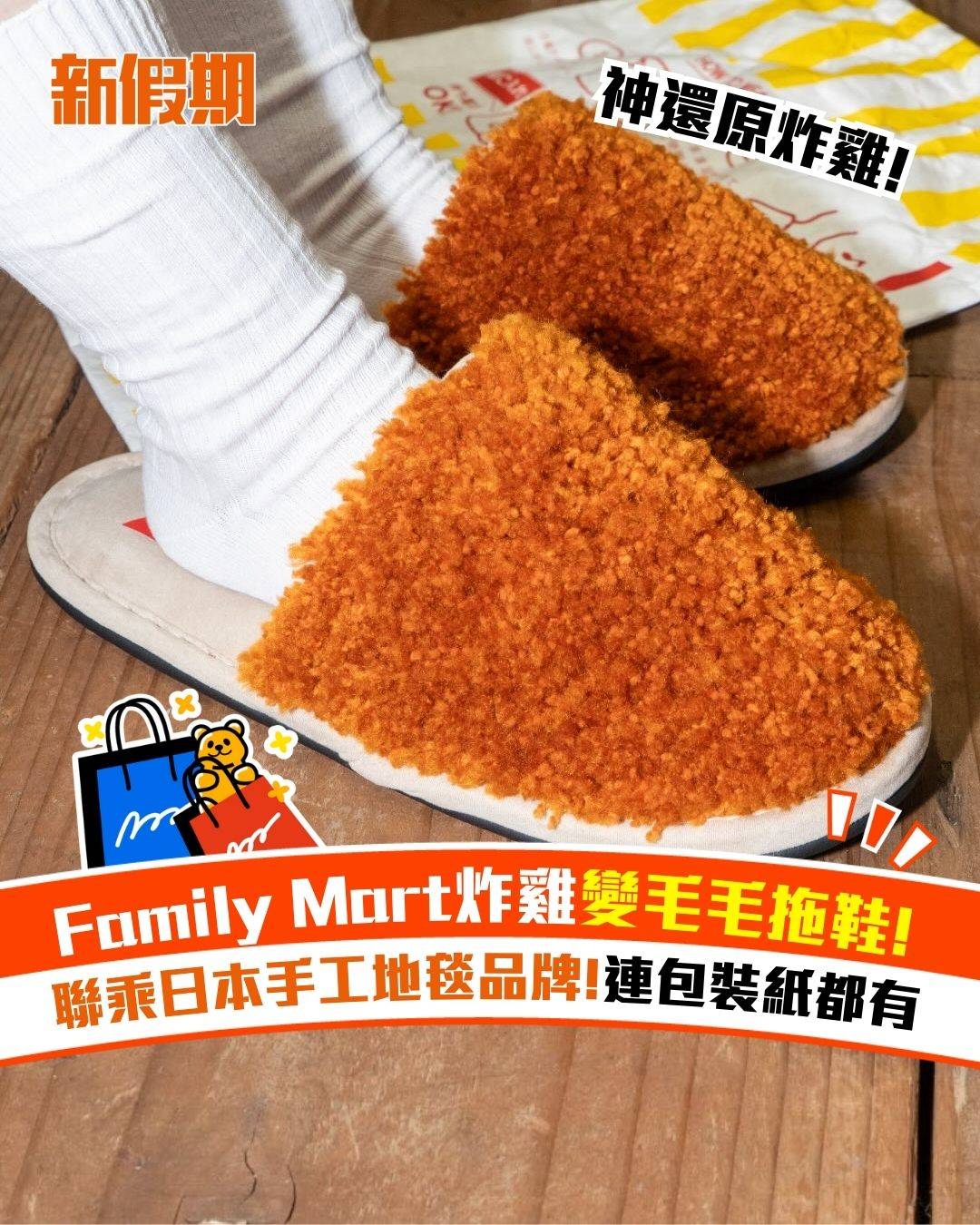 Family Mart炸雞變毛毛拖鞋! 聯乘日本手工地毯品牌!連包裝紙都有