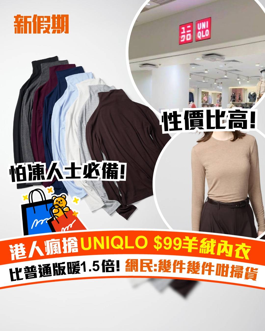 港人瘋搶UNIQLO $99羊絨內衣!比普通版暖1.5倍 網民:幾件幾件咁掃貨