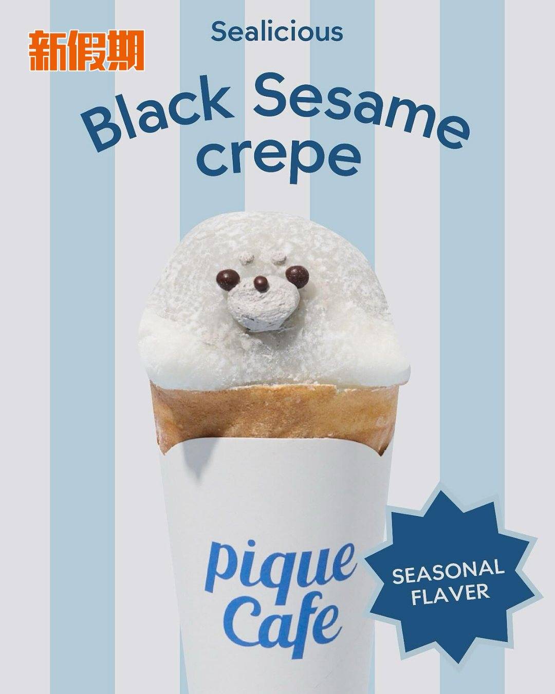 店家最出名就是萌感十足的立體造型海豹麻糬可麗餅。可麗餅藏有芝麻鮮忌廉與穀粒脆片和黑糖蜜,加埋黑芝麻麻糬雪糕,無論賣相定味道都100分!