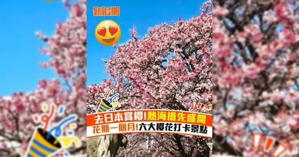 熱海是日本靜岡縣著名的溫泉小鎮,以早開的「熱海櫻」聞名,這種櫻花花朵大而深粉紅,宛如冬末的浪漫信號,讓人提前感受到春天的溫暖。相較一般櫻花,它更耐寒且持久,加上熱海位於海邊的氣候,2026年的熱海櫻花已經開花了!熱海櫻通常從1月至2月中旬盛開,花期長達一個月以上,想提早賞櫻的話就要把握機會!