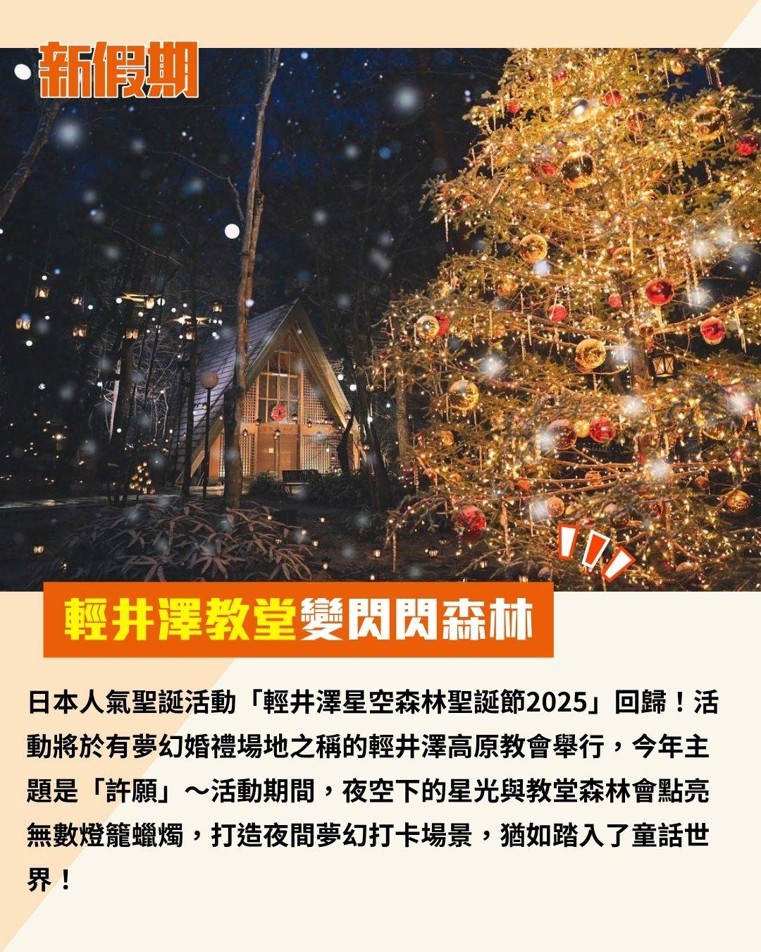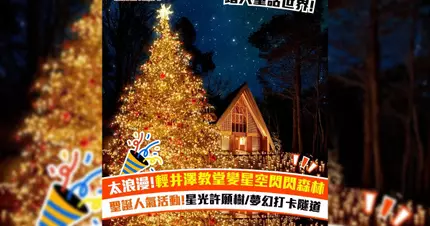 日本人氣聖誕活動「輕井澤星空森林聖誕節2025」回歸!活動將於有夢幻婚禮場地之稱的輕井澤高原教會舉行,今年主題是「許願」~活動期間,夜空下的星光與教堂森林會點亮無數燈籠蠟燭,打造夜間夢幻打卡場景,猶如踏入了童話世界!