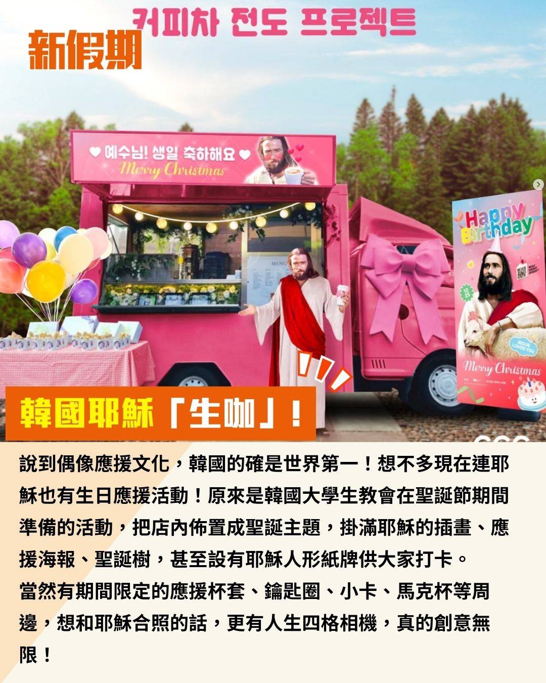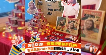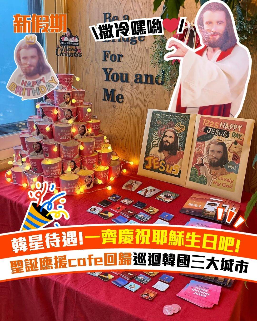 說到偶像應援文化,韓國的確是世界第一!想不多現在連耶穌也有生日應援活動!原來是韓國大學生教會在聖誕節期間準備的活動,把店內佈置成聖誕主題,掛滿耶穌的插畫、應援海報、聖誕樹,甚至設有耶穌人形紙牌供大家打卡。