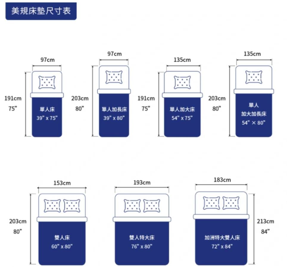 - 香港 vs. 美國:美國King為193 x 203 cm,香港為183 x 198 cm。