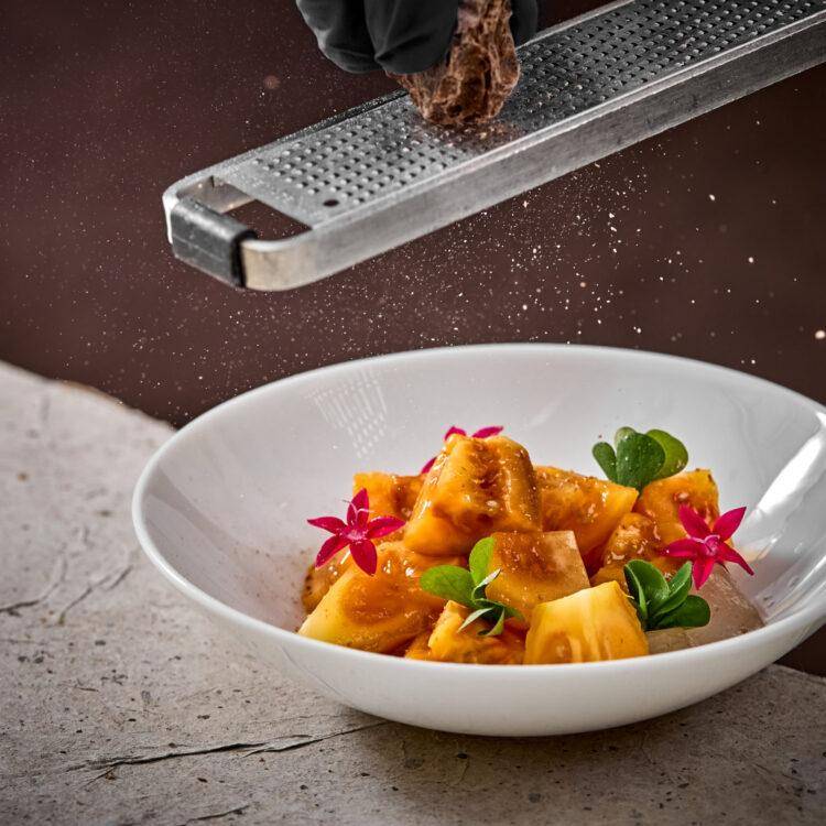 唐人館以其精緻的粵菜聞名,其中最受歡迎的招牌菜式包括唐人館叉燒、蘋果叉燒酥和蠔皇叉燒包。此外,餐廳的Egg Tarts(蛋撻)也是不容錯過的美食。餐廳經常與知名廚師合作,推出特色菜式,如越醬烤本地黑毛豬叉燒鍋巴和鱘魚子龍蝦煮花蟹伴椰皇荳花,為食客帶來驚喜的味覺體驗。