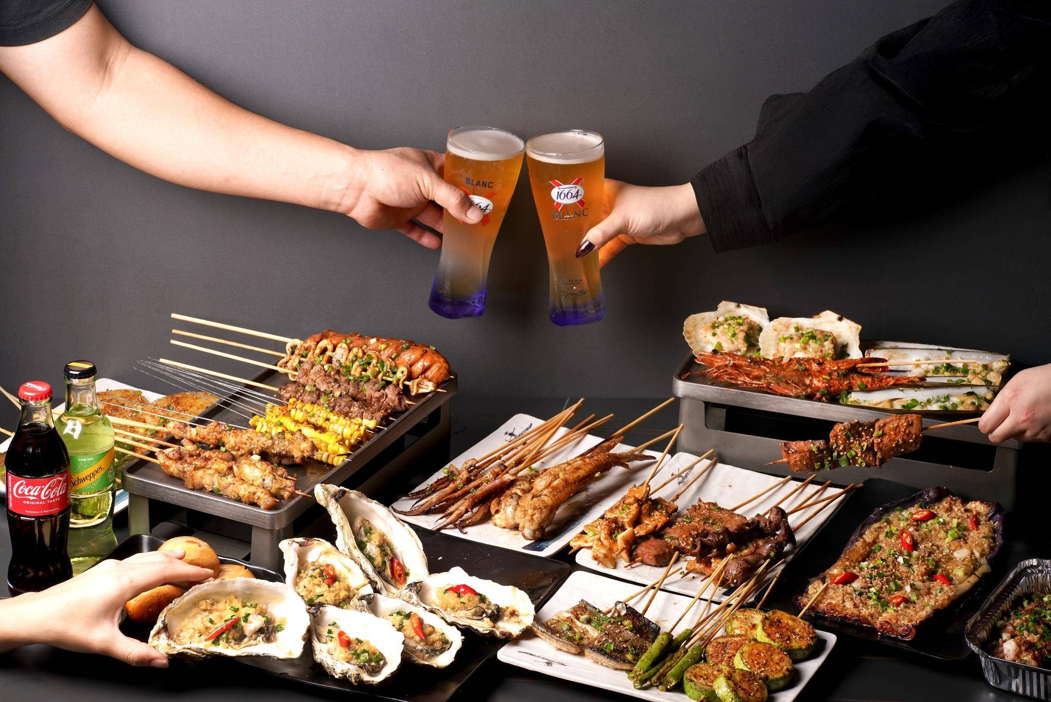 啤酒溝燒烤的主打菜式包括$98的31串串燒套餐和$98六隻蒜蓉烤蠔。串燒套餐提供多種選擇,滿足不同口味需求,而蒜蓉烤蠔則以新鮮多汁的烤蠔搭配香濃蒜蓉,口感豐富。此外,餐廳還提供多款手工啤酒,可以完美配合各種燒烤美食。