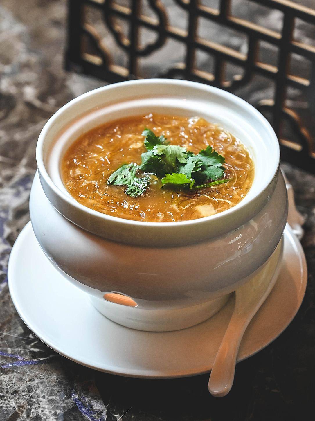 張公館的菜單融合了傳統與創新,為食客帶來豐富多樣的美食體驗。蟹粉小籠包是餐廳的招牌菜之一,薄皮大餡,蟹粉鮮甜,湯汁香濃。脆脆笑哈哈則是另一道不容錯過的菜式,油條與蝦肉完美結合,腸粉滑嫩,口感豐富。對於注重養生的客人,羊肚菌松茸竹笙花菇燉湯是絕佳選擇,湯品滋補養生,香氣四溢。