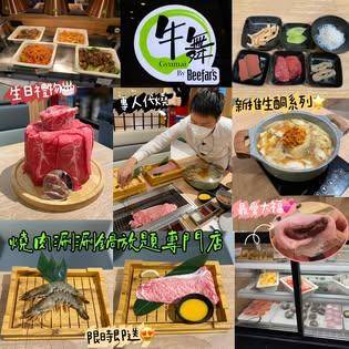 牛舞的特色菜品包括薩摩牛牛肩胛、甲羅燒和磯煮鮑魚。此外,餐廳還提供多種海鮮選擇,如大隻虎蝦和蒜香牛油帆立貝。炸物區有創意美食如榴槤炸彈和朱古力流心炸彈。涮涮鍋方面,顧客可以選擇三種湯底,搭配薄切和牛享受不同風味。