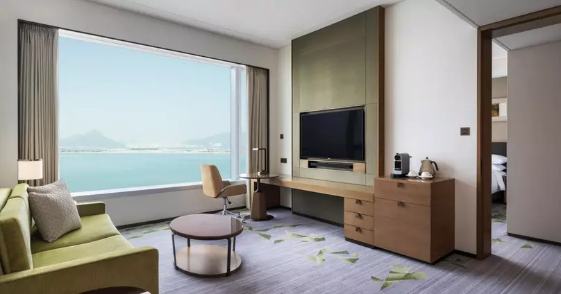 采悅軒位於香港東涌世茂喜來登酒店2樓,擁有開揚的大嶼山海景。餐廳環境寬敞高貴,設計融合中國傳統特色和現代元素,以湖水藍色坐椅和紅木傢俬為主調,營造優雅時尚的氛圍。餐廳可容納120位賓客,是享受美食和欣賞海景的理想場所。