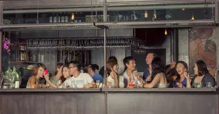 Bilibala Yakitori Bar 的環境設計時尚昏暗,融合了酒吧和日式居酒屋的風格。餐廳氛圍輕鬆愜意,非常適合與朋友聚會或享受悠閒的晚餐。空間寬敞舒適,為顧客提供了一個放鬆身心、品嚐美食的理想場所。