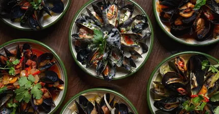 FRITES Belgium on Tap 不僅以其美味的比利時菜式聞名,更以其獨特的氛圍吸引食客。餐廳的招牌菜 Frites House Mussels 以新鮮青口配以秘製醬汁烹調,口感鮮美。750g 烤豬手外皮酥脆,肉質鮮嫩多汁,是與朋友分享的理想選擇。對於海鮮愛好者,Tiger Prawn and Smoked Salmon Risotto 則是不容錯過的美食,濃郁的海鮮風味與意大利飯的口感完美融合。