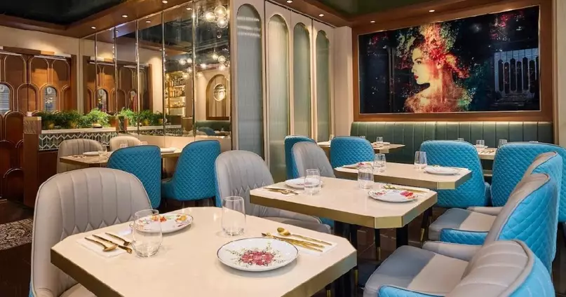 餐廳的招牌菜包括慢煮羊膝燴香料飯和碳烤自家製印度芝士。慢煮羊膝經過長時間烹調至軟嫩入味,配搭特調香料飯層次豐富。碳烤印度芝士則採用傳統製作工藝,經炭火烤製後外脆內嫩,散發濃郁奶香,展現出前杜拜皇室御廚的精湛廚藝。